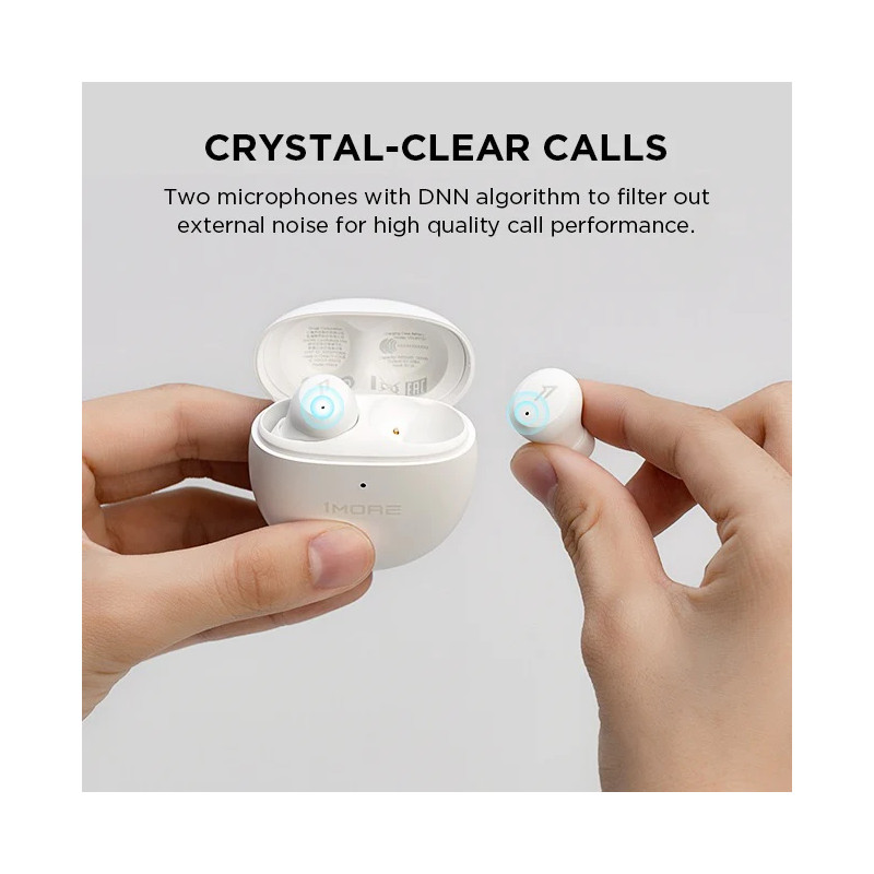– Two microphones in each earbud combined with a DNN algorithm work together to focus on your voice and filtering?out surrounding noises, keeping your voice sounding clear for every call