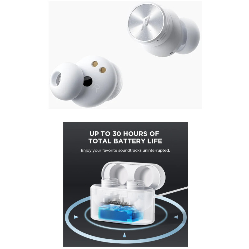– Playtime lasts for 7.5 hours on a single charge with ANC off and total of 30 hours with the charging case