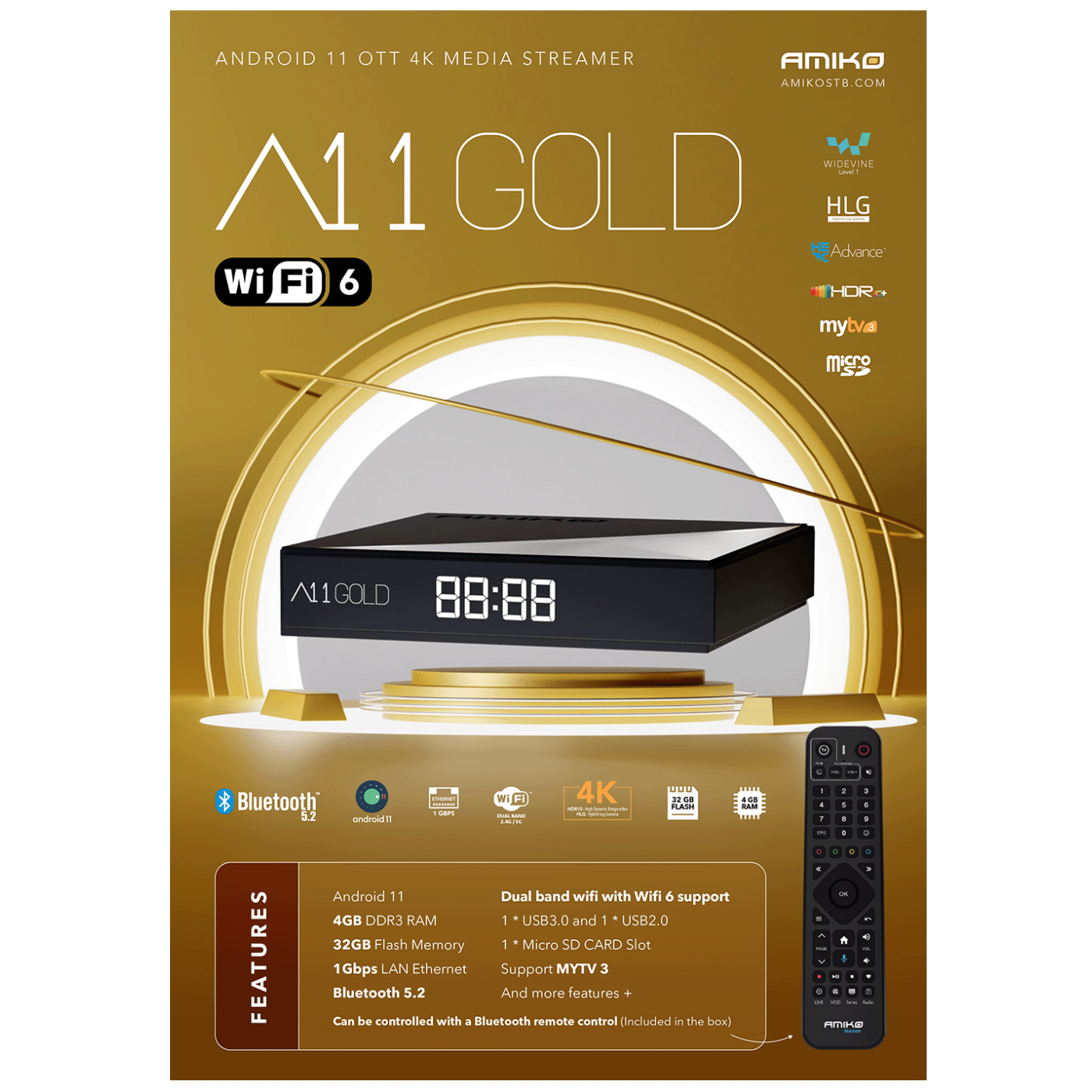 UltraHD 4K IPTV prijemnik, Android OS 11, Media Player, CPU Amlogic S905X4 Quad core A55 64bit 2.0 GHz, 4GB DDR3 RAM memorije, 32GB interne memorije, grafička kartica Mali-G31.