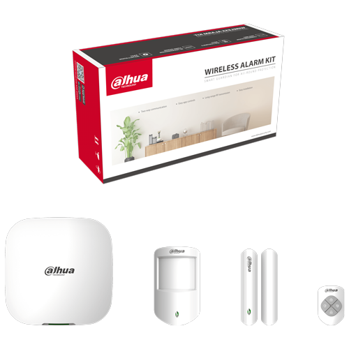 ARC3000H-FW2(868) Alarmni hub (vrhunski model – WiFi, žična mreža, GPRS, 3G): Podržava do 150 periferija (do 6 sirena, 64 daljinca), Frekvencija 868.0 MHz–868.6 MHz, domet do 2.000m na otvorenom, 2-smjerna komunikacija s AES128 enkripcijom, Frequency Hopping, Dual SIM i Singl Standby, auto switching, Singl SIM (GSM:900 / 1800 MHz, WCDMA:B1 /B5 /B8, LTE-FDD:B1 /B3 /B5 /B7 /B8 /B20, LTE-TDD:B38 /B40 /B41), SMS/Pozivi do 5 telefonskih brojeva, Wi-Fi 2.4G/5G, RJ-45 mrežni priključak 10/100Mbps, Ugrađena litijska baterija autonomije do 12h, LED indikator, 3 tastera za upravljanje (reset, uključivanje, AP), Tamper, Protokoli: TCP/IP, L2TP, DHCP, UPNP, NTP, ANR, Cloud Update, SIA-DC09 protokol; Video provjera alarma, Stolna ili zidna montaža, Dimenzije 163.0 mm × 163.0 mm × 32.0 mm, masa 0.38kg, s napajanjem 220VAc/12Vdc 1.5A, CE certificiran; ARD1233-W2(868) Bežični IC detektor: Dual-element PIR, Pokrivanje 12m 90° pri visini montaže 2.2m, Detekcija pri 0.3 m/s–3 m/s, Pet Immunity Level ≤ 18 kg, Otpornost na bijelo svjetlo do 6500 lx, Podešavanje osjetljivosti u 3 razine, Dvosmjerna digitalna temperaturna kompenzacija, LED indikator, Taster za uključivanje, Tamper, Mjerenje temperature u rasponu –15 °C do +65 °C s preciznošću ± 1°C, Frekvencija 868.0 MHz–868.6 MHz, Domet do 1.600m na otvorenom, 2-smjerna komunikacija s AES128 enkripcijom, Frequency Hopping, Tamper, U kompletu s CR123A baterijom, Trajanje baterije do 4 godine, površinska montaža, Radna Temperatura: -10 °C do +55 °C, Dimenzije 104.0 mm × 60.0 mm × 50.0 mm, Masa 100g, CE certificiran; ARD323-W2(868) Bežični magnetni kontakt s alamnim ulazom: Gap <40mm, Za drvena i PVC vrata, s jednim žičnim ulazom, LED indikator, Taster za uključivanje, Tamper, Mjerenje temperature u rasponu –15 °C do +65 °C s preciznošću ± 1°C, 2-smjerna komunikacija s AES128 enkripcijom, Frekvencija 868.0 MHz–868.6 MHz, Frequency Hopping, Detekcija jačine signala, Domet do 1.200m na otvorenom, U kompletu s CR123A baterijom, Trajanje baterije do 5 godina, Montaža uz pomoć nosača (u pakiranju ), Radna Temperatura: -10 °C do +55 °C, Dimenzije 100.2mm × 20.8mm × 20.3mm, Masa 70g, CE certificiran; ARA24-W2(868) daljinski upravljač: 4 tastera (Home, Away, Disarm, and SOS), Dvobojni LED indikator, Frekvencija 868.0 MHz–868.6 MHz, domet do 900m na otvorenom, 2-smjerna komunikacija s AES128 enkripcijom, Frequency Hopping, U kompletu s CR2032 baterijom, Dimenzije 60.0 mm × 39.5 mm × 15.0 mm, masa 20g
