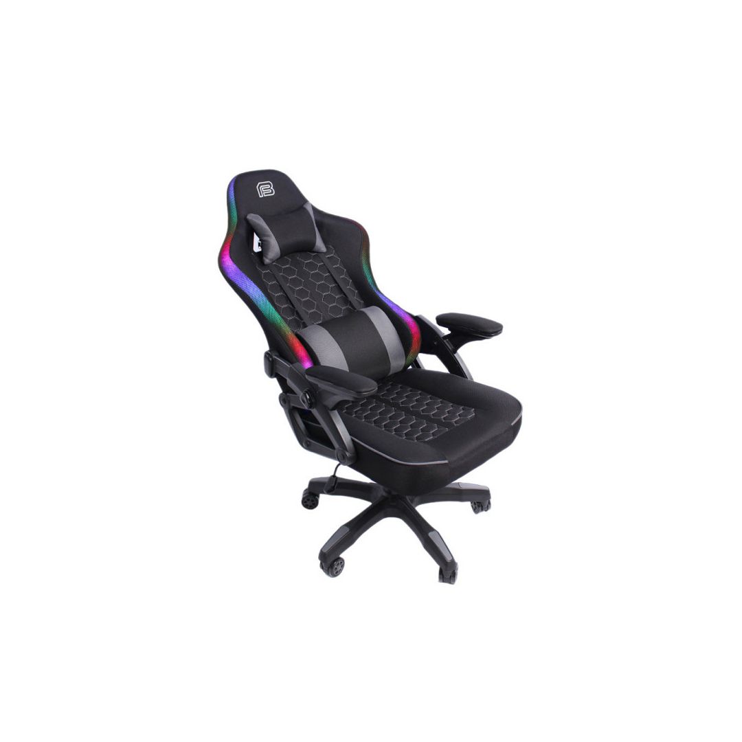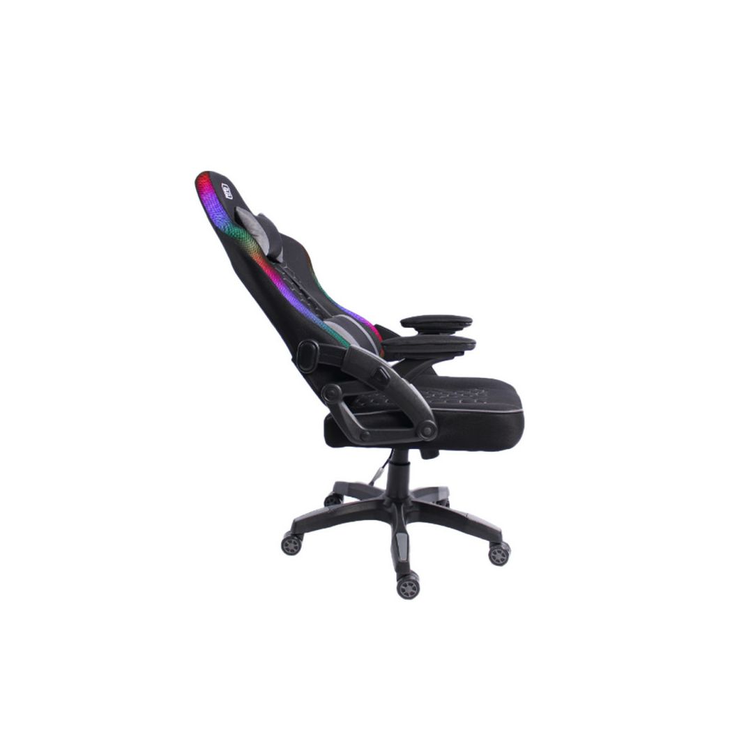 Specifikacije – Nasloni za ruke: 2D – Materijal pokrova stolice: PU koža – Materijal unutrašnjosti: Hladno prešana pjena – Dimenzije (cm): 67.5 x 51.5 x 116 – 126 – RGB rubno osvjetljenje – Napajanje osvjetljenja: 5V uz USB konektor – Tip mehanizma: 17# Leptir – Tip postolja: 320mm plastična baza – Zračni mehanizam podizanja: Klasa 3 / 100mm – Veličina i materijal kotačića: 60mm PU – Jastuk za glavu i leđa od tkanine – Nosivost: 130kg – Širina naslona za ramena: 56.5cm – Visina naslona: 79.5cm – Veličina sjedala: 48cm Š x 51cm D – Visina sjedala: 44.5/54.5cm – Zaključavanje kuta nagiba 10° – Zaključavanje nagiba – Podešavanje nagiba 135° – Boja pokrova stolice: Crna – Materijal okvira: Željezo – Boja okvira: Crna – Potrebna montaža