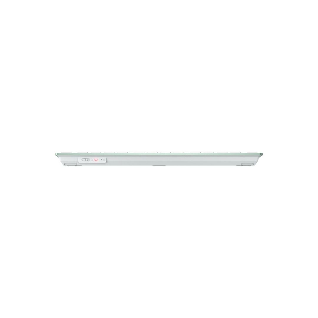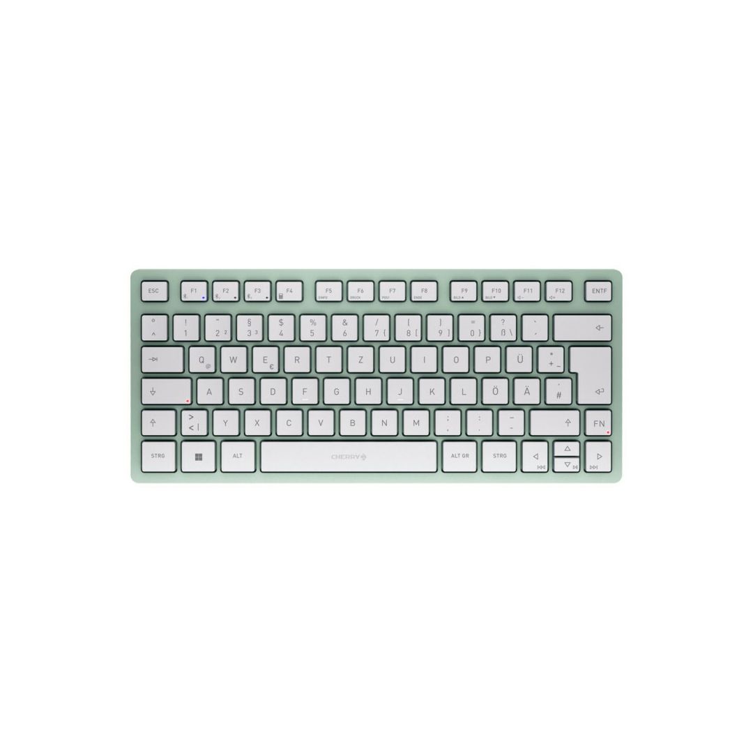 – The CHERRY KW 7100 MINI BT is a compact Bluetooth wireless keyboard that is perfect for use on the go. Ideal for both personal and professional purposes: The multi-device keyboard can be connected to up to three different devices at the same time. The carrying case provided makes the keyboard easy to store and transport, meaning it is always ready for use.The three Bluetooth® 5.1 channels enable use with multiple devices. You can easily switch between the equipment you have connected and control whichever device you need by simply pressing the F1 to F3 keys. The KW 7100 MINI BT is compatible with virtually any Bluetooth®-enabled device, including desktop PCs, notebooks and tablets*.*Supported operating systems: Windows; Android™ and Chrome OS with some restrictions – CHERRY SX scissor mechanism guarantees precision. The slightly concave keys resemble a laptop keyboard and enable smooth and effortless typing — all while making very little noise.The CHERRY KW 7100 MINI BT is not only an ideal choice because of its excellent typing features, but also because of its minimalist design. Due to its compact dimensions, the keyboard takes up very little space on your desk — meaning that the MINI version is also ideal for working on the go in places where there is less work space available, such as in cafés or at university. The compact keyboard can even offer ergonomic advantages: The arm used to operate the mouse can be kept closer to the keyboard, which creates an improved shoulder posture and can prevent tension. – A closer look at the keys shows many special functions. The FN key not only provides access to Bluetooth® channels, image adjustment and volume control, but can also be used for multimedia functions such as play/pause and track selection. If you need to use these special functions permanently, the FN key can be locked with the simple press of a key.The status LEDs integrated into the keys indicate whether theFN-Lock key is activated, as well whether the Caps Lock key is activated and which Bluetooth® channel is currently in use.- The free downloadable CHERRY KEYS software can be used to assign your desired function to each key.The keyboard is delivered in completely plastic-free packaging, and also comes with a black carrying case made of recycled plastic. The compact size of the KW 7100 MINI BT means it can be easily carried in a bag and can also be transported safely and securely from one place of use to another.The CHERRY KW 7100 MINI BT boasts a minimalist design, ultra-slim dimensions, multi-device functionality and ergonomic benefits. With all these features, the wireless compact keyboard is in no way inferior to a full-size keyboard.SpecificationsDimensions & Weight – Length without packaging: 295 mm – Width without packaging: 129 mm – Height without packaging: 16 mmCompatibility – Operating System: Windows 10, Windows 11, Windows 7, Windows 8 – System Requirements: Bluetooth 4.0 or higherPower supply – Battery rechargeable: no – Battery replaceable: yes – Battery charging socket: noSupport – Warranty: 2 years warrantyTechnical data (keyboard) – Keycap material: ABS – Key labeling: Pad Printing + UV coating – Special key functions: FN – Key technology: Scissor – Service life per key (in million strokes): 10 mio. actuations – Status LEDs: in keys – Adjustable feet: integrated – Switching characteristics: standard – Anti-ghosting: no – Key encryption: AES-128 – Keyboard format: Compact (75%) – N-Key Rollover: no – Integrated metal plate: yes – Actuating force (cN): 62,5 cN – Total travel: 2 mmConnection (Bluetooth) – Connection via Bluetooth (keyboard): yes – Bluetooth protocol (keyboard): Bluetooth 5.1 – Bluetooth range (keyboard): 10 mConnection (radio) – USB Transceiver: no
