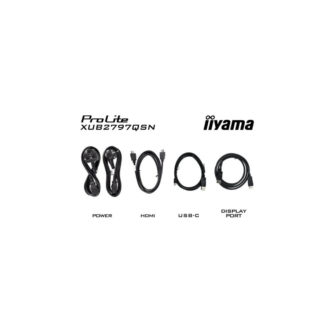 – Opremljen USB-C priključnim priključkom, XUB2797QSN vam omogućuje pojednostavljenje radnog prostora korištenjem jednog kabela za slanje signala (audio, video i dodir) s prijenosnog računala na monitor, a istovremeno osigurava napajanje i punjenje prijenosnog računala. Osim toga, ako je vaš monitor spojen na internet putem LAN kabela, vaše prijenosno računalo će se automatski spojiti i na mrežu. Zahvaljujući DisplayPort izlazu možete jednostavno proširiti svoju radnu površinu stvaranjem dvostrukog monitora. IPS panel osigurava bogate i točne boje sa širokim kutovima gledanja. QHD rezolucija, visoki kontrast i svjetlina znače da monitor pruža izvrsne performanse za fotografski i web dizajn. Ergonomski stalak nudi podešavanje visine od 150 mm, a mehanizmima za naginjanje i okretanje možete jednostavno okrenuti monitor u portretni način rada za veću udobnost pri radu na velikim podatkovnim listovima.USB-C priključna stanica – Priključna stanica vam omogućuje spajanje prijenosnog računala jednim kabelom na monitor kako biste bili sigurni da je napunjeno i spojeno na žičanu mrežu te da se signal s prijenosnog računala šalje na monitor. Drugi monitor može se spojiti na DisplayPort (MST) izlaz kako bi se stvorila konfiguracija s više monitora. S dodatnim USB priključcima, miš, tipkovnica ili web kamera također se mogu spojiti na monitor. Sve zahvaljujući jednom kabelu koji spaja vaše prijenosno računalo* s USB C priključnom stanicom u monitoru.IPS tehnologija – IPS tehnologija nudi veći kontrast, tamnije crne boje i puno bolje kutove gledanja od standardne TN tehnologije. Zaslon će izgledati dobro bez obzira na kut gledanja. QHD – S pravom QHD rezolucijom od 2560 x 1440p, vaš monitor je spreman za prikaz slika visoke razlučivosti. To znači da na zaslonu možete smjestiti više informacija, tj. preko 76% više u usporedbi s monitorom rezolucije 1920 x 1080.Bez treperenja + plavo svjetlo – Vrhunsko rješenje za udobnost i zdravlje vaših očiju. Monitori bez treperenja s funkcijom smanjenja plavog svjetla znatno smanjuju naprezanje i umor uzrokovan treperenjem i emisijom plavog svjetla običnih monitora.Zvučnici – Ovaj LED monitor opremljen je s dva stereo zvučnika.SpecifikacijeKARAKTERISTIKE ZASLONA – Dizajn: bez okvira s 3 strane – Dijagonala: 27″, 68,5 cm – Panel: IPS tehnologija panela LED, mat završna obrada – Izvorna rezolucija: 2560 x 1440 100Hz (3,7 megapiksela QHD) – Omjer slike: 16:9 – Svjetlina panela: 300 cd/m2 – Statički kontrast: 1300:1 – Napredni kontrast: 80M:1 – Vrijeme odziva (MPRT): 1ms – Područje gledanja: Vodoravno/okomito: 178°/178°, desno/lijevo: 89°/89°, gore/dolje: 89°/89° – Podrška za boje: 16,7 milijuna (sRGB: 99%; NTSC: 72%) – Horizontalna sinkronizacija: 30 – 151 kHz – Vidljivo područje Š x V: 596,7 x 335,7 mm, 23,5 x 13,2″ – Razmak piksela: 0,233 mm – Boja: Mat, crna (mat, crna)SUČELJJA / PRIKLJUČCI / KONTROLE – Ulaz signala * HDMI x1 (v.2.0) * DisplayPort x1 (v.1.4) * USB-C x1 (PD 65W) – Izlaz signala * DisplayPort x1 (Daisy Chain MST maks. ?2560? x ?1440?) – USB HUB: x4 (3x v.3.2 Gen 1 (5Gbps, 4.5W) 1x Type C (5Gbps, 15W)) – USB-C DOCK: x1 (Napajanje 65W, LAN, DP izlaz, USB v.3.2 (Gen 1, 5Gbit)) – HDCP: Da – Priključak za slušalice: Da – RJ45 (LAN): x1ZNAČAJKE – Smanjenje plavog svjetla: Da – Bez treperenja: Da – Podrška za Adaptive Sync: Da – Dodatno: i-Style boja – Jezici OSD-a: EN, DE, FR, ES, IT, RU, JP, CZ, NL, PL – Kontrolne tipke: Napajanje, Izbornik, Podešavanje/Glasnoća, Izbornik Podešavanje/Prečaci, Ulaz/Izlaz – Korisničke kontrole: Podešavanje slike (svjetlina, kontrast, Eco, ACR, OD, MBR, Adaptive Sync), postavke boja (i-Style boja, reduktor plavog svjetla, temperatura boje, korisničke postavke), OSD (H. položaj OSD-a, V. položaj OSD-a, rotacija OSD-a, vrijeme OSD-a), jezik, ponovno pozivanje, razno 1 (oštro i meko, podešavanje video načina, početni logotip, RGB raspon), razno 2 (USB BC, MST, USB, LED, informacije o zaslonu, MAC adresa), odabir ulaza, postavke zvuka (glasnoća, isključivanje zvuka ) – Zvučnici: 2 x 2W – Praktičnost: Pripremljeno za Kensington zaključavanje, DDC2BMEHANIČKI – Podešavanje položaja zaslona: Visina, okretanje, nagib, pivot (rotacija na obje strane) – Podešavanje visine: 150 mm – Rotacija (PIVOT funkcija): 90° – Okretni stalak: 120°; 60° lijevo; 60° desno – Kut nagiba: 23° gore; 5° dolje – VESA montaža: 100 x 100 mm – Sustav za upravljanje kabelima: DaUKLJUČENA DODACI – Kabeli: Napajanje, HDMI, DP, USB-C – Ostalo: Kratki vodič, sigurnosni vodičUPRAVLJANJE NAPAJANJEM – Napajanje: Unutarnje – Napajanje: AC 100 – 240 V, 50/60 Hz – Potrošnja energije: 26 W tipično, 0,5 W u stanju pripravnosti, 0,3 W isključenoODRŽIVOST – Propisi: TCO certificirano, CE, TÜV-GS, EAC, VCCI-B, PSE, RoHS podrška, ErP, WEEE, REACH, UKCA – Klasa energetske učinkovitosti (Uredba (EU) 2017/1369): E – EPEAT Silver: EPEAT je sveobuhvatna ekološka ocjena koja pomaže u prepoznavanju zelenijih računala i druge elektroničke opreme. Srebrni certifikat znači da monitor ispunjava sve potrebne kriterije plus najmanje 50% dodatnih zahtjeva. EPEAT Silver vrijedi u zemljama u kojima iiyama registrira proizvod. Posjetite www.epeat.net za status registracije u vašoj zemlji. – REACH SVHC: Iznad 0,1%: OlovoDIMENZIJE / TEŽINA – Dimenzije proizvoda Š x V x D: 613,5 x 400,5 (550,5) x 209,5 mm – Dimenzije kutije Š x V x D: 679 x 427 x 130 mm – Težina (bez kutije): 6,1 kg – Težina (s kutijom): 8,7 kg – EAN kod: 4948570125012