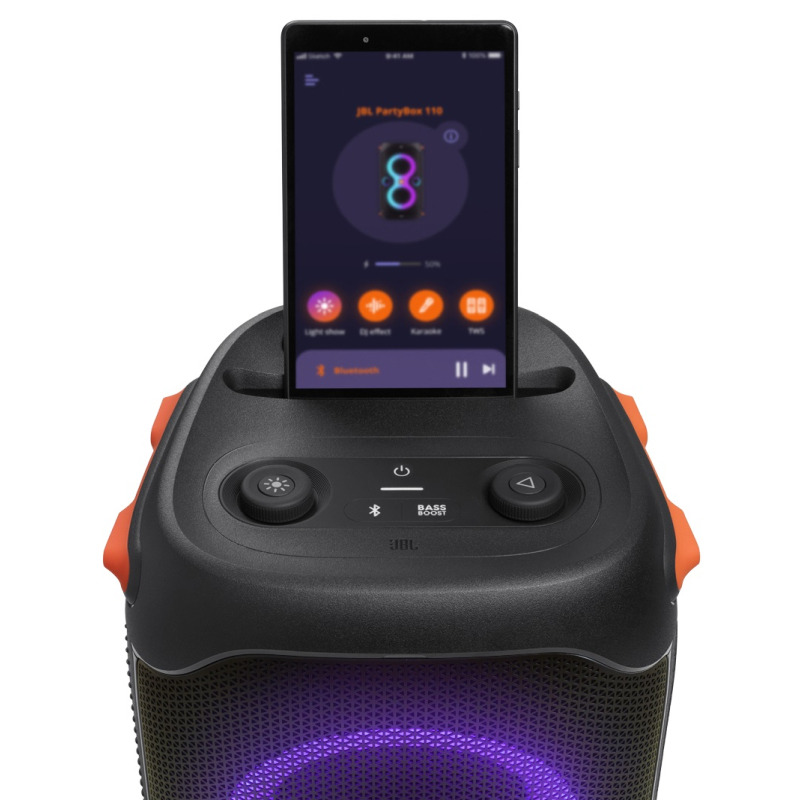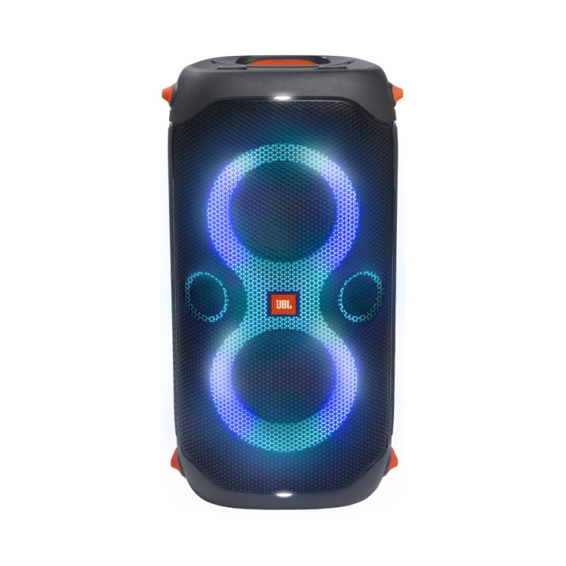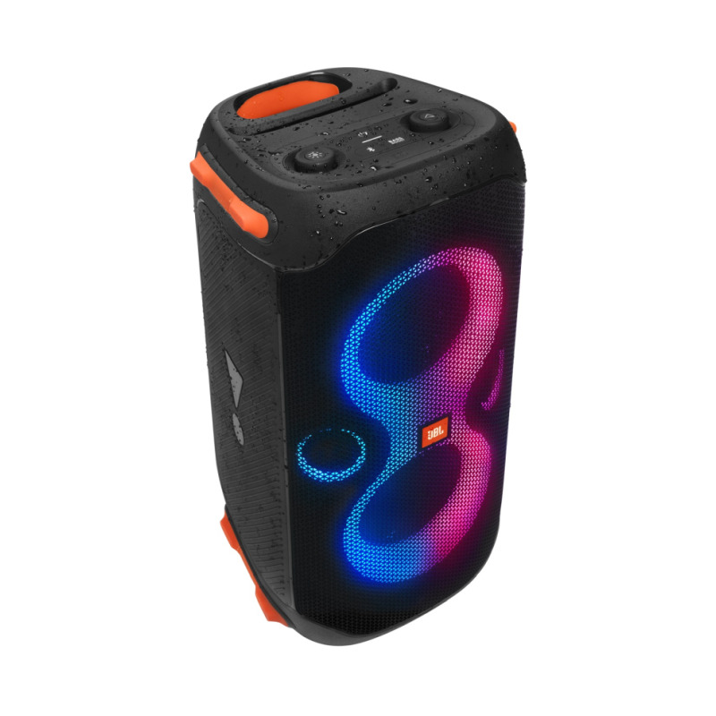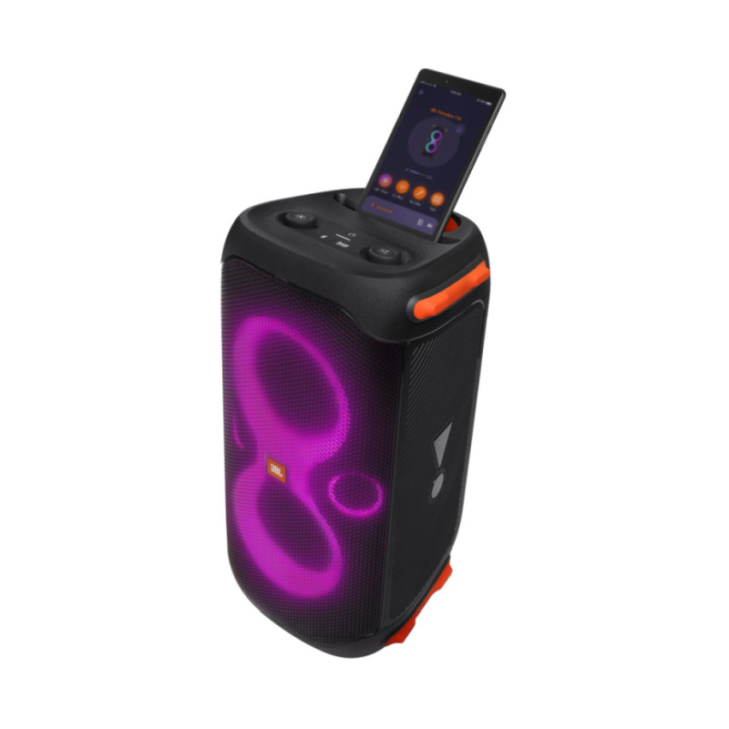 Features- Powerful JBL Original Pro Sound- Dynamic light show that syncs to the beat- 12 hours of playtime- IPX4 splashproof- Mic and Guitar inputs- PartyBox app- Multisource playback- Pair your speakers for even bigger soundSpecifications- Transducers: 2 x 154.6 mm woofer, 2 x 55 mm tweeter- Output power: 160 W RMS- Power input: 100 V – 240 V / 50/60 Hz- Frequency response: 45Hz – 20KHz (-6dB)- Signal-to-noise ratio: > 80 dB- USB format: FAT16, FAT32- USB file format: .mp3, .wma, .wav- USB charge out: 5 V / 2.1 A (maximum)- Cable type: AC Power Cable- Cable length: 2000 mm- Bluetooth version: 5.1- Bluetooth profile: A2DP 1.3, AVRCP 1.6- Bluetooth transmitter frequency range: 2.4 GHz – 2.4835 GHz- Bluetooth transmitter power: ? 15 dBm (EIRP)- Bluetooth transmitter modulation: GFSK, ?/4 DQPSK, 8DPSKBattery- Battery type: Li-ion polymer 36 Wh- Battery charge time: 3.5 hours- Music play time: up to 12 hoursDimensions- Dimensions (WxHxD): 295x568x300 mm – Weight: 10.84 kg