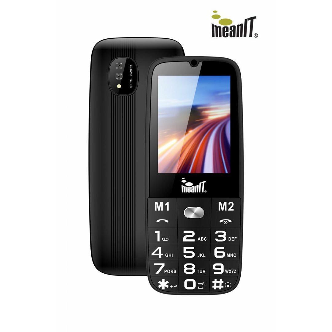 meanIT / SENIOR 15 MOBILNI TELEFON CRNI Software s velikim tipkama i znakovima DUAL SIM , Zaslon 2.4″ M1 i M2 tipke za brzo biranje SOS tipka, FM Radio, Kamera Led svjetiljka velike snage Uređaj prilagođen za osobe starije dobi 1800mAh Li-Ion baterija (*Kućni punjač s USB C priključkom u pakiranju)