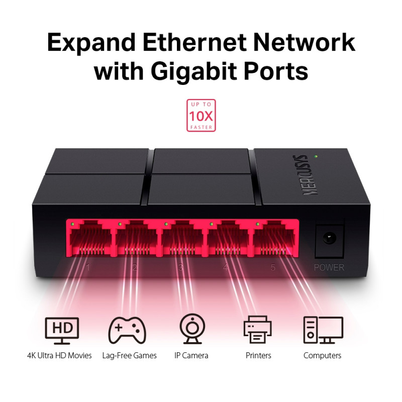 – MS105G is flexible and fully compatible with 4K Ultra HD TVs, computers, printers, IP cameras, game consoles, and more