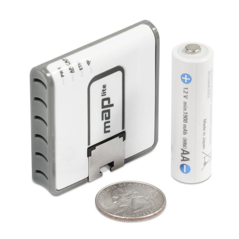 – The mAP lite is our smallest wireless access point. It is barely larger than a matchbox, we even had to use a special Ethernet port to match its slim profile