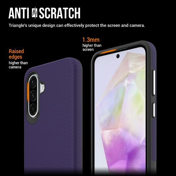 Materijal otporan na grebanje i udarce, a podignuti rub štiti ekran i kameru od padova na ravnu površinu.