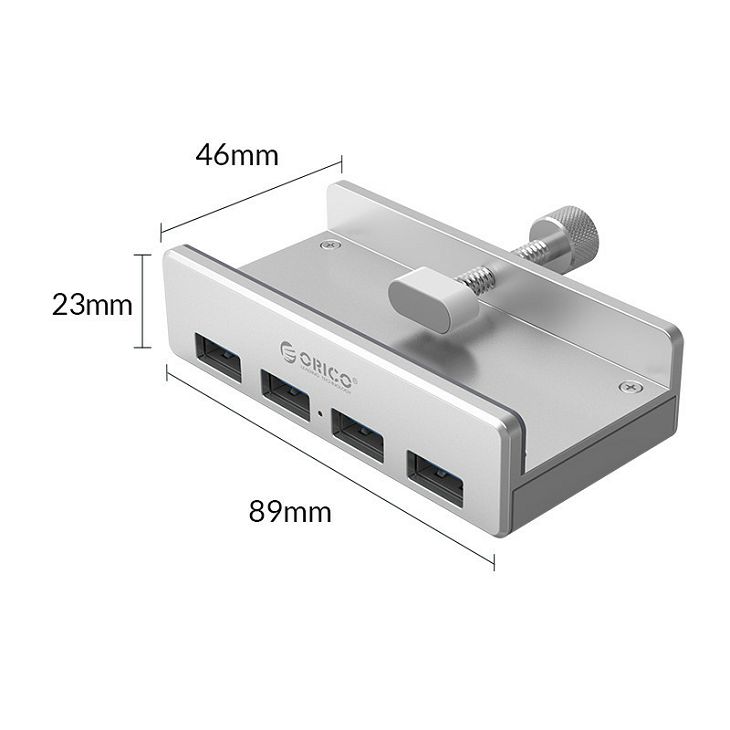 Specifications- Color: Silver- Input: USB3.0 Type-A*1- Output: USB3.0 Type-A*4- Material: Aluminium Alloy- Size: 89*46*23mm- Clip Range: 10-32mm- Cable Length: 150cm – Type-A to Type-A