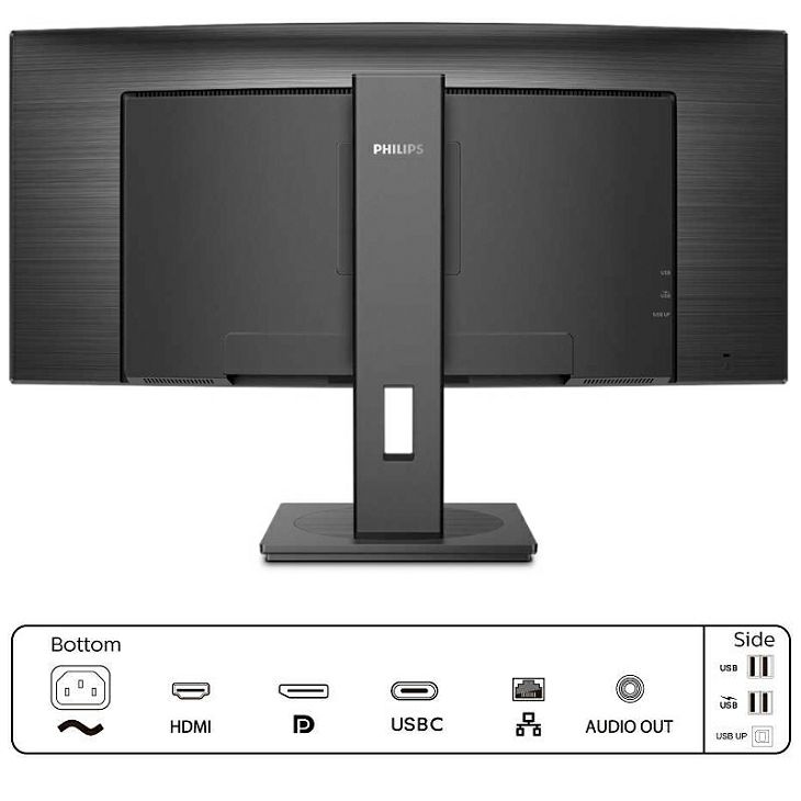 – CrystalClear slika uz UltraWide QHD s 3440×1440 piksela – Ugrađena KVM sklopka za lako prebacivanje između izvora – Ugrađena USB-C priključna stanica – Tehnologija Adaptive-Sync omogućuje uglađen prikaz akcije – Manje umaranje očiju uz tehnologiju Flicker-free – LowBlue Mode za privlačnu produktivnost – PowerSensor smanjuje troškove za energiju do 70% – LightSensor za savršenu svjetlinu uz minimalno napajanje – VA zaslon osigurava prikaz sjajnih slika pri širokim kutovima gledanja – Način rada EasyRead za doživljaj čitanja poput onoga s papira – MultiView omogućava istovremeno dvostruko povezivanje i prikaz – Nagib, zakretanje i visina mogu se prilagoditi za idealan položaj gledanjaSpecifikacijaSLIKA / PRIKAZ – Vrsta LCD zaslona: VA LCD – Vrsta pozadinskog osvjetljenja: W-LED sustav – Veličina ploče: 34″ (86,36 cm) – Premaz zaslona monitora: Sprječava odbljesak, 2H, neprozirnost 25% – Efektivno područje pregleda: 797.2 (V) × 333.7 (O) – @ zaobljenošću 1500 R – Omjer širine i visine: 21:9 – Maksimalna razlučivost: 3440×1440 @ 100 Hz – Gustoća piksela: 110 PPI – Vrijeme odziva (uobičajeno): 5 ms (od sive do sive) – Svjetlina: 300 cd/m2 – Omjer kontrasta (uobičajeno): 3000:1 – SmartContrast: 80.000.000:1 – Razmak piksela: 0.23175 × 0.23175 mm – Kut gledanja: 178o(V) / 178o(O) @ C/R > 10 – Bez titranja: Da – Napredne znača – Značajke slike: SmartImage – Boje zaslona: 16.7 M – Paleta boja (uobičajeno): NTSC 100%, sRGB 119%, Adobe RGB 90% – Frekvencija skeniranja: 30-160 kHz (V) / 48-100 Hz (O) – SmartUniformity: 93 – 105 % – Delta E: – sRGB: Da – LowBlue Mode: Da – EasyRead: Da – Prilagodljiva sink.: Da POVEZIVANJE – Signalni ulaz: * 1× DisplayPort 1.2 * 1× HDMI 2.0b * 1× USB-C 3.2 Gen1 (slanje, napajanje do 90 W) – HDCP: HDCP 1.4 (DP / USB-C), HDCP 2.2 (HDMI) – USB: * 1× USB-C * 1× USB-B (slanje) * 4× USB 3.2 (preuzimanje uz jedno brzo punjenje B.C 1.2) – Audio (ulaz/izlaz): Izlaz za slušalice – RJ45: Ethernet LAN do 1G, Wake On Lan – Ulaz sinkronizacije: Odvojena sinkronizacijaUSB PRIKLJUČAK – USB-C: Priključak sa simetričnim utikačem – Izuzetna brzina: Prijenos podataka i videozapisa – DP: Ugrađeni način rada Display Port Alt – USB-C s napajanjem: USB PD verzije 3.0 – USB-C s maks. napajanjem: Do 90W (5V/3A, 7V/3A, 9V/3A, 10V/3A, 12V/3A, 15V/3A, 20V/4.5A)PRAKTIČNOST – Ugrađeni zvučnici: 5W ×2 – MultiView: Način rada PIP/PBP, 2 uređaja – Praktične značajke: SmartImage, Ulaz, Korisnik, Izbornik, Uključeno/isključeno – Upravljački softver: SmartControl – Dodatne pogodnosti: Kensington brava, VESA stalak (100×100 mm) – Kompatibilnost za Plug & Play: DDC/CI, Mac OS X, sRGB, Windows 10/8.1/8/7 – Regulator visine: 180 mm – Zakretanje: -180/180 stupanjeva – Nagib: -5/30 stupanjeva NAPAJANJE – Način rada ECO: 34W (uobičajeno) – Uključeno: 28.36W (uobičajeno) (metoda ispitivanja EnergyStar) – Stanje pripravnosti: 0.3 W (tip.) – Isključeno: Prekidač za potpuno isključivanje – Energetska klasa: B – LED indikator napajanja: Tijekom rada – bijela, Način rada pripravnosti – bijela (bljeska) – Napajanje: Ugrađeno, 100-240V AC, 50-60HzDIMENZIJE / TEŽINA- Dimenzije proizvoda s postoljem (maks. visina): 807×601× 250 mm- Dimenzije proizvoda bez postolja: 807×367×110 mm- Težina proizvoda s postoljem: 11.49 kg- Težina proizvoda bez postolja: 7.79 kgRADNI UVJETI – Raspon temperature (rada): 0°C do 40°C – Raspon temperature (skladištenje): -20°C do 60°C – Relativna vlažnost: 20% – 80% – Nadmorska visina: Tijekom rada: +12.000 stopa (3.658 m), Kada ne radi: +40.000 stopa (12.192 m) – MTBF (dokazano ispitivanjem): 70.000 h (bez pozadinskog osvjetljenja)ODRŽIVOST – Okoliš i energija: PowerSensor, LightSensor, EnergyStar 8.0, Certifikat TCO, RoHS – Ambalaža se može reciklirati: 100% – Specifične tvari: Ne sadrži živu, Ne sadrži olovo, Kućište ne sadrži PVC/BFRSUKLADNOST I STANDARDI – Propisi i odobrenja: CB, EPA, cETLus, FCC, klasa B, ICES-003, CE oznaka, TUV/GS, TUV Ergo, SEMKO, CU-EAC, TUV certifikat za smanjenje umora očijuKUĆIŠTE – Postolje: Crna – Stražnji poklopac: Crna – Prednja ploča: Crna – Završna obrada: Naglašena teksturaŠTO SE NALAZI U KUTIJI – Monitor s postoljem: Da – Kabeli: HDMI, DisplayPort, USB, Audio i kabel za napajanje – Korisnička dokumentacija