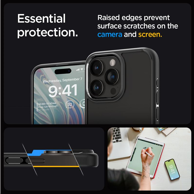 Značajke – Hibridni dizajn izrađen od kruteg i fleksibilnog odbojnika – Podignuti okviri podignite zaslon i kamera s ravnih površina – Zaštita od pada putem tehnologije zračnog jastuka – Precizni izrezi i taktilni gumbi osiguravaju brz pristup i povratne informacije – Bežično punjenje kompatibilno – Materijal: TPU + PC