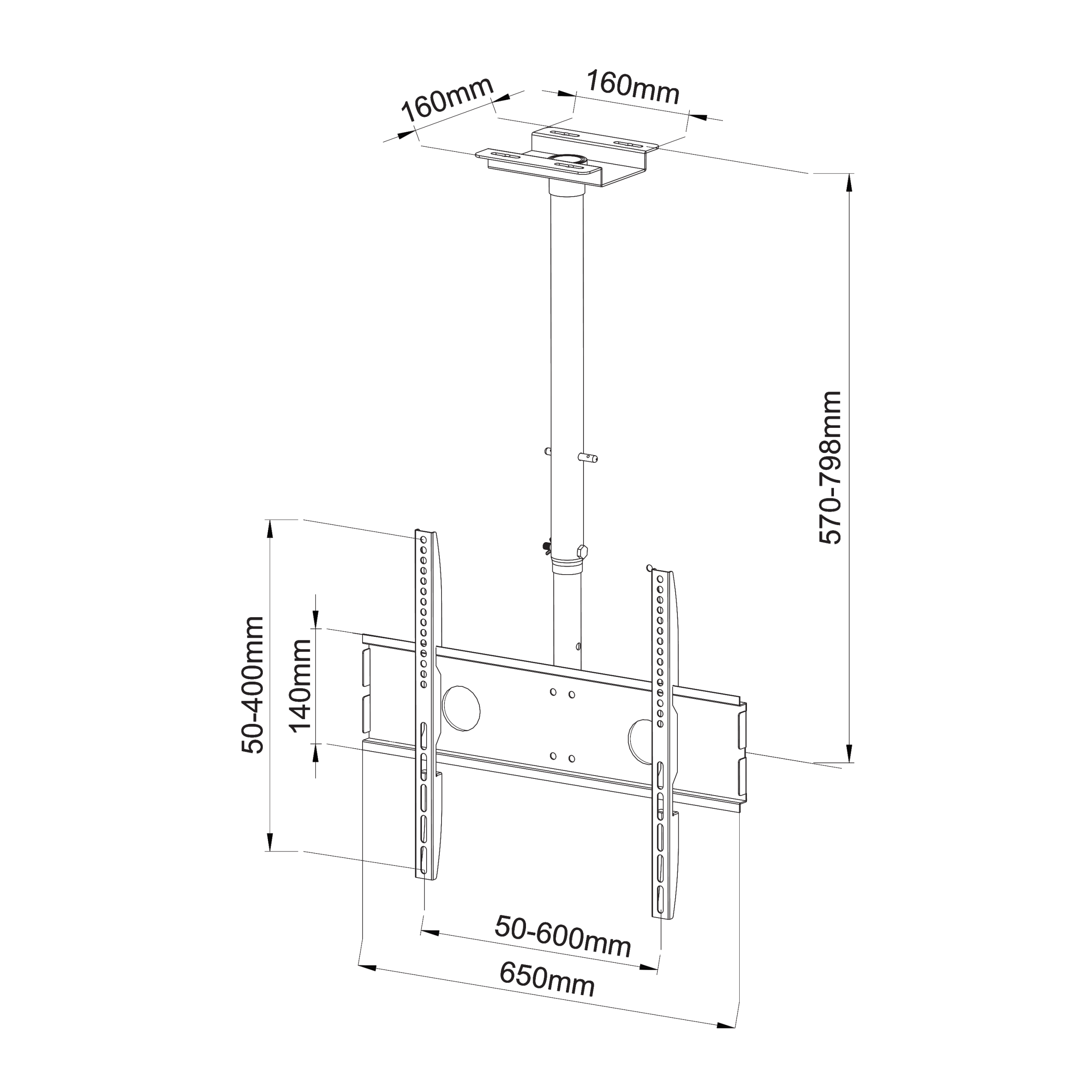 Podešavanje visine: 570 – 798 mm (od stropa do TV-a)