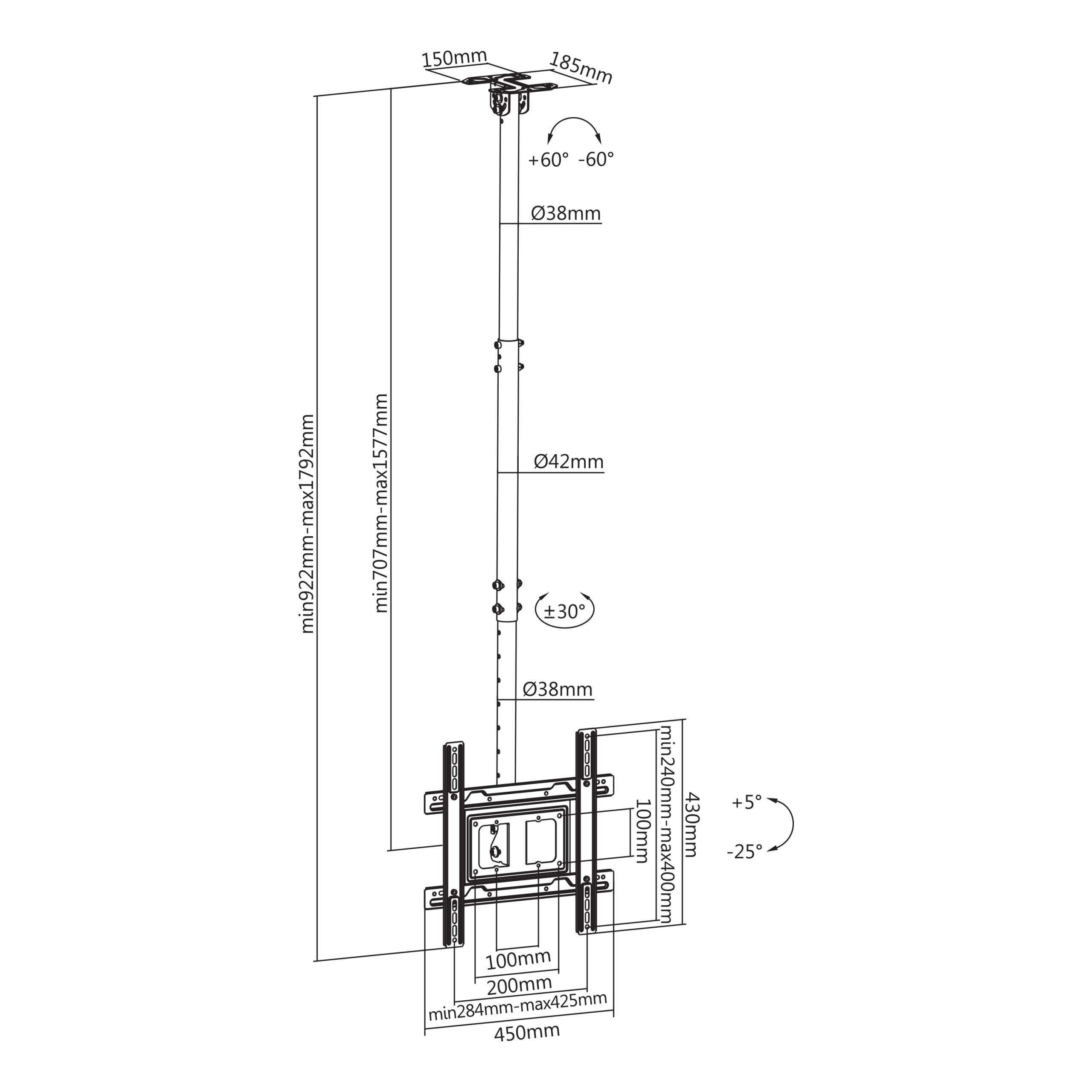 Vertikalni nagib : +5° / -25°