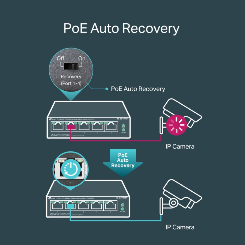 – When total power consumption excels 58W, the intelligent power management will cut the lower priority port power off to ensure the high priority ports power supply and protect the device from power overload operation