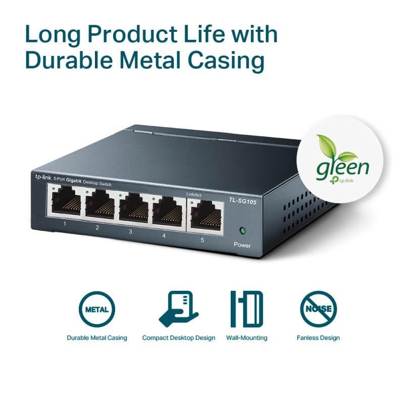 – Interface: 5× 10/100/1000Mbps, Auto-Negotiation, Auto-MDI/MDIX Ports