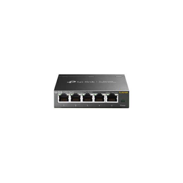 LINK YOUR DEVICES, CREATE CONVENIENT BUSINESS- The TL-SG105E Desktop Switch provides you an easy way to increase the speed of your network server and backbone connections- Whether you are at home or in the office, the TL-SG105E can always help you deal with your business quickly and easilyMORE FEATURES, MORE CHOICES- Administrators can designate the priority of traffic based on QoS to ensure that voice and video applications remain clear and lag-free- IGMP Snooping optimizes multimedia traffic delivery, to ensure a better network experience especially for applications like IPTVDURABLE METAL CASING- The interior components of TL-SG105E are protected by high-quality metal casing to ensure a long product life- Having passed an array of stringent reliability tests, TL-SG105E delivers switching performance you can depend on- Its compact size makes it ideal for deployment on desktops or work benchesFeatures- 5× 10/100/1000Mbps RJ45 ports- Plug and play, with no configuration required- Durable metal casing of superior quality and professional appearance- Intelligent management via a web user interface and downloadable utility- Green technology reduces power consumptionSpecificationsHARDWARE FEATURES- Standards and Protocols: IEEE 802.3i, IEEE 802.3u, IEEE 802.3ab, IEEE 802.3x, IEEE 802.1q, IEEE 802.1p- Interface:* 5 10/100/1000Mbps RJ45 Ports* AUTO Negotiation/AUTO MDI/MDIX- Network Media:* 10BASE-T: UTP category 3, 4, 5 cable (max. 100m)** EIA/TIA-568 100Ohm STP (max. 100m)* 100BASE-TX: UTP category 5, 5e cable (max. 100m)** EIA/TIA-568 100Ohm STP (max. 100m)* 1000BASE-T: UTP category 5, 5e, 6 or above cable (max. 100m)** EIA/TIA-568 100Ohm STP (max. 100m)- Fan Quantity: Fanless- Power Supply: External Power Adapter(Output: 9VDC/0.6A)- Dimensions (W×D×H): 100×98×5 mm- Max Power Consumption: 2.66W (220V/50Hz)- Max Heat Dissipation: 9.07BTU/hPERFORMANCE- Packet Forwarding Rate: 7.4Mpps- MAC Address Table: 2K- Packet Buffer Memory: 1Mb- Jumbo Frame: 15KBSOFTWARE FEATURES- Quality of Service:* Support Port-based/802.1p/DSCP priority * Support 4 priority queues* Rate Limit* Storm Control- L2 Features:* IGMP Snooping V1/V2/V3* Static Link Aggregation* Port Mirroring* Cable Diagnostics* Loop Prevention- VLAN:* Supports up to 32 VLANs simultaneously (out of 4K VLAN IDs)* MTU/Port/Tag VLAN- Transmission Method: Store-And-ForwardOTHERS- Certification: FCC, CE, RoHS- Package Contents:* TL-SG105E* Power Adapter* Installation Guide* Rubber Feet- System Requirements: Microsoft® Windows for running Utility- Environment:* Operating Temperature: 0C – 40C (32F – 104F)* Storage Temperature: -40C – 70C (-40F – 158F)* Operating Humidity: 10% – 90% non-condensing* Storage Humidity: 5% – 90% non-condensing