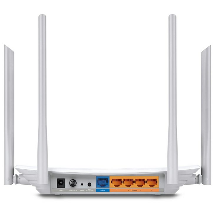 STRONG, FAR-REACHING Wi-Fi- AC1200 Wireless Dual Band RouterHIGH-SPEED DUAL BAND Wi-Fi FOR BETTER CONNECTIONS- The Archer C50 lets your PC or laptop enjoy connections 3× faster than Wireless N with Wireless AC technology- With 300Mbps over the 2.4GHz band and 867Mbps over the the crystal clear 5GHz band, the Archer C50 is the superior choice for seamless HD streaming, online gaming and other bandwidth-intensive tasksINNOVATIVE ANTENNA DESIGN FOR MAXIMUM COVERAGE- Four well-ordered antennas make all of your connections more efficient and stable- Advanced antenna technology increases the receiving sensitivity to enlarge Wi-Fi coverage for your homeEASY PARENTAL CONTROL- Supervise children and staff with responsible access, controlled by parents or administrators- Use key words to easily set up a black list and limit the level of web accessGUEST NETWORK ACCESS- Allow guests to join your Wi-Fi network, while protecting your privacy- Make sharing easy, maintain securityEFFICIENT GUEST AUTHENTICATION WITH FACEBOOK- Captive portal helps maintain only authorized guests to use the network, presenting devices with a convenient, user-friendly authentication method to grant Wi-Fi access- Easily share your facebook account to anyone who connects to your networkFeatures- Supports 802.11ac standard- Simultaneous 2.4GHz 300 Mbps and 5GHz 867 Mbps connections for 1200 Mbps of total available bandwidth- 4 external antennas provide stable wireless connections and optimal coverage- Easy network management at your fingertips with TP-Link Tether- Supports IGMP Proxy/Snooping, Bridge and Tag VLAN to optimize IPTV streaming- Supports Access Point mode to create a new Wi-Fi access pointSpecificationsHARDWARE FEATURES- Interface:* 4× 10/100Mbps LAN Ports* 1× 10/100Mbps WAN Port- Button:* Reset Button* WPS/Wi-Fi On/Off Button* Power On/Off Button- External Power Supply: 9VDC / 0.85A- Dimensions (W×D×H): 229.87×144.19×36.85 mm- Antenna Type: 4 External AntennasWIRELESS FEATURES- Wireless Standards:* IEEE 802.11n/g/b 2.4GHz * IEEE 802.11ac/n/a 5GHz- Frequency: 2.4GHz and 5GHz- Signal Rate:* 2.4GHz: Up to 300Mbps * 5GHz: Up to 867Mbps- Reception Sensitivity:* 5GHz:11a 54M: -73dBm11ac VHT20 MCS8: -68dBm11ac VHT40 MCS9: -64dBm11ac VHT80 MCS9: -60dBm* 2.4GHz:11g 54M: -76dBm11n HT20 MCS7: -74dBm11n HT40 MCS7: -71d- Transmit Power:* CE: * FCC: – Wireless Functions: Enable/Disable Wireless Radio, WDS Bridge, WMM, Wireless Statistics- Wireless Security: 64/128-bit WEP, WPA / WPA2, WPA-PSK/ WPA2-PSK encryptionSOFTWARE FEATURES- Quality of Service: WMM, Bandwidth Control- WAN Type: Dynamic IP/Static IP/PPPoE/BigPond/ /L2TP(Dual Access) /PPTP(Dual Access)- Management: Access Control, Local Management, Remote Management- DHCP: Server, Client, DHCP Client List, Address Reservation- Port Forwarding: Virtual Server, Port Triggering, UPnP, DMZ- Dynamic DNS: DynDns, Comexe, NO-IP- VPN Pass-Through: PPTP, L2TP, IPSec- Access Control: Parental Control, Local Management Control, Host List, Access Schedule, Rule Management- Firewall Security:* DoS, SPI Firewall* IP Address Filter/MAC Address Filter/Domain Filter* IP and MAC Address Binding- Protocols: Supports IPv4 and IPv6- Guest Network:* 2.4GHz guest network ×1* 5GHz guest network ×1OTHERS- Certification: CE, FCC, RoHS- Package Contents:* AC1200 Wireless Dual Band Router Archer C50* Power supply unit* Ethernet Cable* Quick Installation Guide- System Requirements: Microsoft Windows 98SE, NT, 2000, XP, Vista or Windows 7, Windows 8/8.1/10, MAC OS, NetWare, UNIX or Linux- Environment:* Operating Temperature: 0C – 40C (32F – 104F)* Storage Temperature: -40C – 70C (-40F – 158F)* Operating Humidity: 10% – 90% non-condensing* Storage Humidity: 5% – 90% non-condensing
