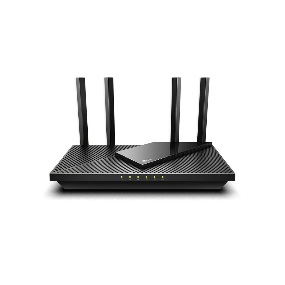 Next-Gen Gigabit Wi-Fi 6 Speed – 2402 Mbps on 5 GHz and 574 Mbps on 2.4 GHz band ensure smoother streaming and faster downloads. Connect More Devices – OFDMA technology increases capacity by 4 times to enable simultaneous transmission to more devices.Ultra-Low Latency – Enables more responsive gaming and video chatting.Expanded Wi-Fi Coverage – Four high-gain external antennas and Beamforming technology combine to extend strong, reliable Wi-Fi throughout your home. TP-Link HomeShield – Enhanced security defends against the latest cyber threats. Improved Battery Life – Target Wake Time helps your devices to communicate more while consuming less power.Compatible with Alexa – Control your router via voice commands and make your life smarter and easier with Amazon Alexa.SpecificationsWIRELESS – Standards: Wi-Fi 6 • IEEE 802.11ax/ac/n/a 5 GHz • IEEE 802.11ax/n/b/g 2.4 GHz – WiFi Speeds: AX3000 • 5 GHz: 2402 Mbps (802.11ax, HE160) • 2.4 GHz: 574 Mbps (802.11ax) – WiFi Range: 3 Bedroom Houses • 4× Fixed High-Performance Antennas: Multiple antennas form a signal-boosting array to cover more directions and large areas • Beamforming: Concentrates wireless signal strength towards clients to expand WiFi range • High-Power FEM: Improves transmission power to strengthen signal coverage – WiFi Capacity: High • Dual-Band: Allocate devices to different bands for optimal performance • OFDMA: Simultaneously communicates with multiple Wi-Fi 6 clients • Airtime Fairness: Improves network efficiency by limiting excessive occupation • DFS: Access an extra band to reduce congestion • 4 Streams: Connect your devices to more bandwidth – Working Modes • Router Mode • Access Point ModeSECURITY – Network Security • SPI Firewall • Access Control • IP & MAC Binding • Application Layer Gateway • HomeShield Security • Real-Time IoT Protection • Malicious Site Blocker • Intrusion Prevention System • DDoS Attack Prevention • Home Network Scanner – Guest Network • 1× 5 GHz Guest Network • 1× 2.4 GHz Guest Network – VPN Server • OpenVPN • PPTP – VPN Client • Open VPN Client • PPTP VPN Client • L2TP VPN Client – WiFi Encryption • WPA • WPA2 • WPA3 • WPA/WPA2-Enterprise (802.1x)HARDWARE – Processor: Dual-Core CPU – Ethernet Ports • 1× Gigabit WAN Port • 4× Gigabit LAN Ports – USB Support: 1× USB 3.0 Port • Supported Partition Formats:: NTFS, exFAT, HFS+, FAT32 • Supported Functions: • Apple Time Machine • FTP Server • Media Server • Samba Server – Buttons: • Wi-Fi/WPS Button • Power On/Off Button • Reset Button – Power: 12 V ? 2 ASOFTWARE – Protocols • IPv4 • IPv6 – Service Kits: HomeShield – OneMesh: OneMesh Supported – Without replacing your existing devices or buying a whole new WiFi ecosystem, OneMesh™ helps you create a more flexible network that covers your entire home with TP-Link OneMesh products. – EasyMesh – Mesh networking creates smooth, fast, stable roaming. Archer AX55 can flexibly build an EasyMesh network with EasyMesh-Compatible devices, which eliminates Wi-Fi dead zones, expand your network, and fill your entire home with high-speed Wi-Fi. Seamless Wi-Fi connections with one network name, one-click setting and flexible scalability. – Parental Controls • HomeShield Parental Controls • Custom Profiles • Professional Content Filter Library • Family Time • Bedtime • Off Time • Time Rewards • Family Online Time Ranking • Pause the Internet • Weekly and Monthly Reports – WAN Types • Dynamic IP • Static IP • PPPoE • PPTP • L2TP – Quality of Service: QoS by Device – Cloud Service: • Auto Firmware Upgrade • OTA Firmware Upgrade • TP-Link ID • DDNS – NAT Forwarding • Virtual Servers • Port Forwarding • Port Triggering • DMZ • UPnP – IPTV • IGMP Proxy • IGMP Snooping • Bridge • Tag VLAN – DHCP • Address Reservation • DHCP Client List • Server – DDNS • TP-Link • NO-IP • DynDNS – Management • Tether App • WebpageOTHER – System Requirements: • Internet Explorer 11+, Firefox 12.0+, Chrome 20.0+, Safari 4.0+, or other JavaScript-enabled browser • Cable or DSL Modem (if needed) • Subscription with an internet service provider (for internet access) – Certifications: FCC, CE, RoHS – Environment: • Operating Temperature: 0?~40? (32? ~104?) • Operating Humidity: 10%~90% non-condensingTEST DATAWiFi Transmission Power CE: • • • FCC:• WiFi Reception Sensitivity 5GHz: • 11ac VHT20_MCS0:-96dBm, 11ac VHT20_MCS8:-75dBm • 11ac VHT40_MCS0:-94dBm, 11ac VHT40_MCS9:-70dBm • 11ac VHT80_MCS0:-91dBm, 11ac VHT80_MCS9:-67dBm • 11ac VHT160_MCS0:-88dBm, 11ac VHT160_MCS9:-63dBm • 11ax HE20_MCS0:-96dBm, 11ax HE20_MCS11:-66dBm • 11ax HE40_MCS0:-93dBm, 11ax HE40_MCS11:-63dBm • 11ax HE80_MCS0:-91dBm, 11ax HE80_MCS11:-61dBm • 11ax HE160_MCS0:-87dBm, 11ax HE160_MCS11:-58dBm2.4GHz: • 11ac VHT20_MCS0:-96dBm, 11ac VHT20_MCS8:-74dB • 11ac VHT40_MCS0:-94dBm, 11ac VHT40_MCS9:-70dB • 11ax HE20_MCS0:-96dBm, 11ax HE20_MCS11:-66dBm • 11ax HE40_MCS0:-93dBm, 11ax HE40_MCS11:-63dBmPHYSICAL – Dimensions (W×D×H): 10.2 × 5.3 × 1.5 in (261.1 × 134.5 × 41.0 mm) – Package Contents • Wi-Fi Router Archer AX55 • Power Adapter • RJ45 Ethernet Cable • Quick Installation Guide