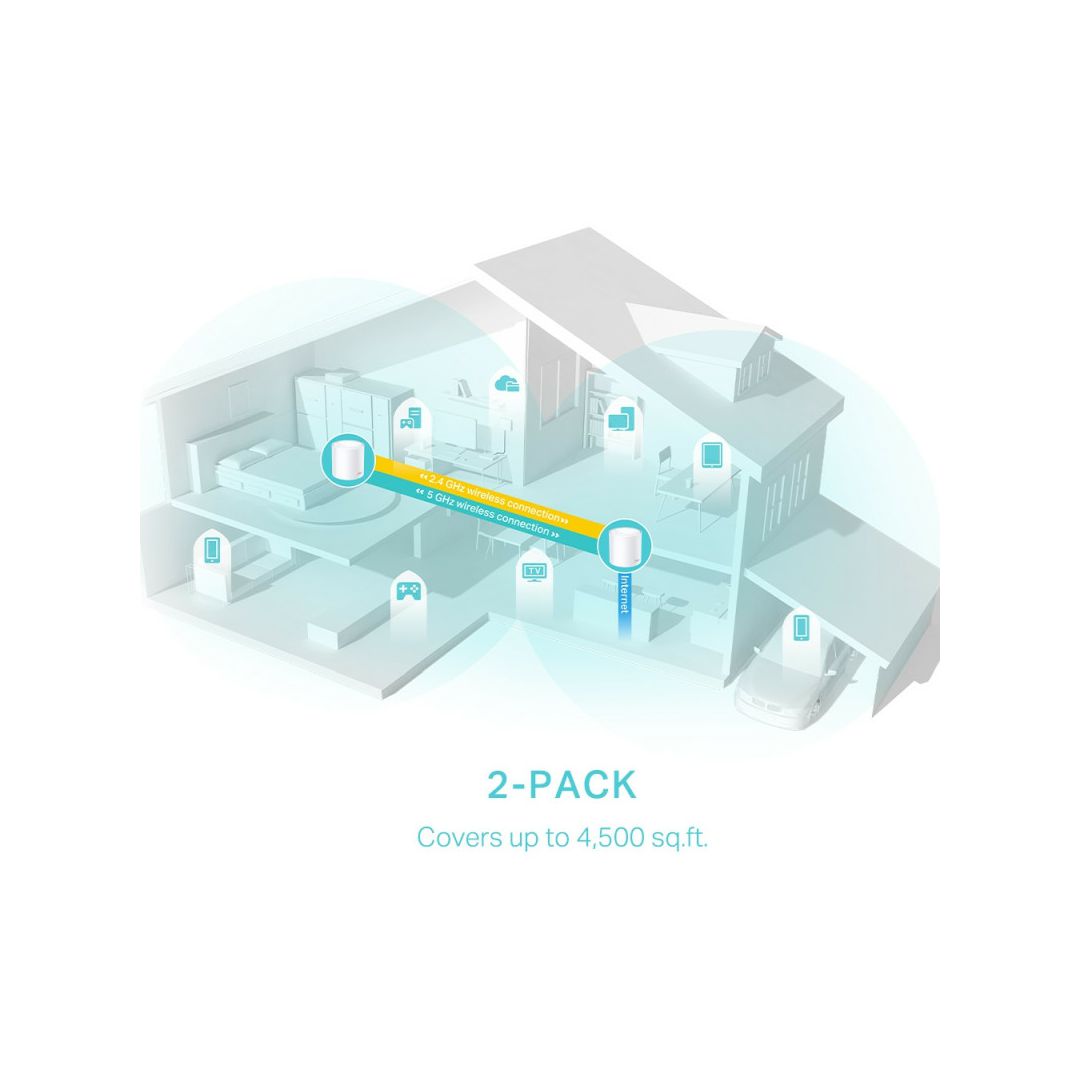 AX3000 Dual Band WiFi – Super-fast WiFi 6 with speeds up to 3.0 Gbps4 Streams, Less Lag – 2×2/HE160 2402 Mbps + 2×2 574 MbpsGigabit Wired Speed – 3× Gigabit ports provide sufficient connectivityBoosted Seamless Coverage – Seamless mesh WiFi coverage up to 4,500 ft2 (2-pack)AI-Driven Mesh – Intelligently learns the network environment to provide ideal WiFi unique to your homeTP-Link HomeShield – Provides comprehensive network protection, robust parental controls, and real-time IoT protectionSetup Made Easier Than Ever – The Deco app walks you through the setup step-by-stepSpecificationsWIRELESS – Standards: Wi-Fi 6 • IEEE 802.11ax/ac/n/a 5 GHz • IEEE 802.11ax/n/b/g 2.4 GHz – WiFi Speeds: AX3000 • 5 GHz: 2402 Mbps (802.11ax, HE160) • 2.4 GHz: 574 Mbps (802.11ax) – WiFi Range: 3-4 Bedroom Houses (2-pack) • TP-Link Mesh Technology: Optional Ethernet backhaul work together to link Deco units to provide seamless coverage • AI-Driven Mesh: Intelligently learns the network environment to provide ideal Wi-Fi unique to your home • 2× Antennas (Internal): Multiple antennas form a signal-boosting array to cover more directions and large areas • Beamforming: Concentrates wireless signal strength towards clients to expand WiFi range – WiFi Capacity: High • Dual-Band: Distribute devices to different bands for optimal performance • 2×2 MU-MIMO: Simultaneously communicates with multiple MU-MIMO clients • OFDMA: Simultaneously communicates with multiple WiFi 6 clients • 4 Streams; More than enough bandwidth for connected devices – Working Modes • Router Mode • Access Point ModeSECURITY – Network Security • SPI Firewall • Access Control – HomeShield Security • Real-Time IoT Protection • Malicious Site Blocker • Intrusion Prevention System • DDoS Attack Prevention • Home Network Scanner – Guest Network • 1× 5 GHz Guest Network • 1× 2.4 GHz Guest Network – VPN Server • Open VPN Server • PPTP VPN Server • L2TP VPN Server – VPN Client • Open VPN Client • PPTP VPN Client • L2TP VPN Client – WiFi Encryption • WPA-Personal • WPA2-Personal • WPA3-PersonalHARDWARE – Button: Reset Button – Ethernet Ports: 3× Gigabit Ports*Per Deco Unit – Supports WAN/LAN auto-sensingSOFTWARE – Advanced Features • Reboot Schedule • Tapo/Kasa onboarding • IoT network & Device Isolation • Static Router Function • Node/Band Connection Preference – Protocols • IPv4 • IPv6 – Service Kits: HomeShield – Parental Controls: • HomeShield Parental Controls • Custom Profiles • Professional Content Filter Library • Family Time • Bedtime • Off Time • Time Rewards • Family Online Time Ranking • Pause the Internet • Weekly and Monthly Reports – WAN Types • Dynamic IP • Static IP • PPPoE • PPTP • L2TP – Quality of Service • HomeShield QoS • QoS by Device – Cloud Service • OTA Firmware Upgrade • TP-Link ID • DDNS – NAT Forwarding • Port Forwarding • UPnP – IPTV • IGMP Proxy • IGMP Snooping • Bridge • Tag VLAN – DHCP • Address Reservation • DHCP Client List • Server – DDNS: TP-Link – Management: Deco AppTEST DATA – WiFi Transmission Power – CE: – FCC:PHYSICAL – Dimensions (W×D×H): 4.33 × 4.33 × 4.49 in (110 × 110 × 114 mm) – Package Contents • 2 Deco X55 units • 1 RJ45 Ethernet cable • 2 Power adapters • 1 Quick Installation GuideOTHERS – System Requirements • Android 5.0 or later • iOS 9.0 or later*Note: The minimum system requirements will be updated alongside updates to the app, subject to official website information. – Certifications: CE, FCC, RoHS, RCM – Environment: Operating Temperature: 0°C~40°C (32°F~104°F) – Storage Temperature: -40°C~70°C (-40°F~158°F) – Operating Humidity: 10%~90% non-condensing – Storage Humidity: 5%~90% non-condensing