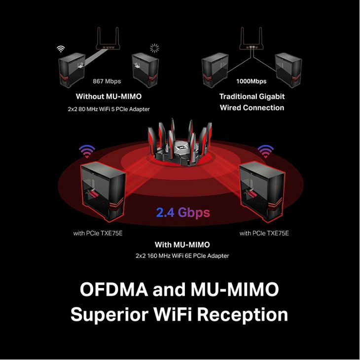 Features- Unparalleled Tri-Band Speed — Boost your overall speeds up to 2402 Mbps (6 GHz) + 2402 Mbps (5 GHz) + 574 Mbps (2.4 GHz)- WiFi 6E Standard — Expand to the clearer, broader 6 GHz band for more bandwidth and faster speeds — Reliable Connections — The latest Intel® Wi-Fi 6E chipset’s reduced latency and improved reliability unlocks your Wi-Fi 6E router’s full potential- Wider Signal Coverage — Two multi-directional antennas with a magnetized base are designed for optimal signal reception- Bluetooth 5.3 — The latest Bluetooth technology achieves faster speeds and broader coverage- – Improved Security — The latest security enhancement, WPA3, provides enhanced protection in personal password safety- Reliably Engineered — The specialized heatsink and gold plating improve stability and performance even at high CPU temps- Backward Compatibility — Full support for 802.11ax/ac/a/b/g/n standardsSpecificationsHARDWARE FEATURES- Dimensions: 3.7 × 4.8 × 0.8 in (95.2 ×120.8 ×21.5 mm)- Antenna Type: 2× High-Gain Tri-Band AntennasWIRELESS FEATURES- Wireless Standards: IEEE 802.11a/b/g/n/ac/axWLAN Signal Rate – 6 GHz:* 11ax: Up tp 2402Mbps- 5 GHz:* 11ax: Up to 2402 Mbps(dynamic)* 11ac: Up to 1732 Mbps(dynamic)* 11n: Up to 300 Mbps(dynamic)* 11a: Up to 54 Mbps(dynamic)- 2.4 GHz:* 11ax: Up to 574 Mbps(dynamic)* 11n: Up to 400 Mbps(dynamic)* 11g: Up to 54 Mbps(dynamic)* 11b: Up to 11 Mbps(dynamic)WLAN Reception Sensitivity – 6 GHz:* 11ax HE160 MCS0:-86* 11ax HE160 MCS11:-56- 5 GHz:* 11ax HE80 MCS0: -90 dBm* 11ax HE80 MCS11: -59 dBm* 11a 54Mbps: -77 dBm* 11ac VHT80 MCS0: -92dBm* 11ac VHT80 MCS9: -64dBm- 2.4 GHz:* 11ax HE40 MCS0: -91 dBm* 11ax HE40 MCS11: -60 dBm* 11g 54Mbps: -76 dBm* 11n HT40 MCS7: -72dBm- WLAN Transmit Power * 5 GHz: 20dBm(FCC) /15dBm(CE) (EIRP)* 2.4 GHz: 20dBm(FCC) / 16dBm(CE) (EIRP)* 6 GHz: 12dBm(FCC)- WLAN Modes: Infrastructure mode- Wireless Security: WEP, WPA/WPA2/WPA3, WPA-PSK/WPA2-PSKOTHERS- Certification: FCC, CE, RoHS- Package Contents: * Archer TXE75E* Magnetized Antenna Base with 1m RF Cable* 2× High-Gain Antennas* Low-Profile Bracket* Bluetooth Header Cable* Quick Installation Guide* Resource CD- System Requirements: Supported operating systems include Windows 11- Environment: Operating Temperature: 0?~40? (32? ~104?)- Operating Humidity: 10%~90% non-condensing- Storage Humidity: 5%~90% non-condensing