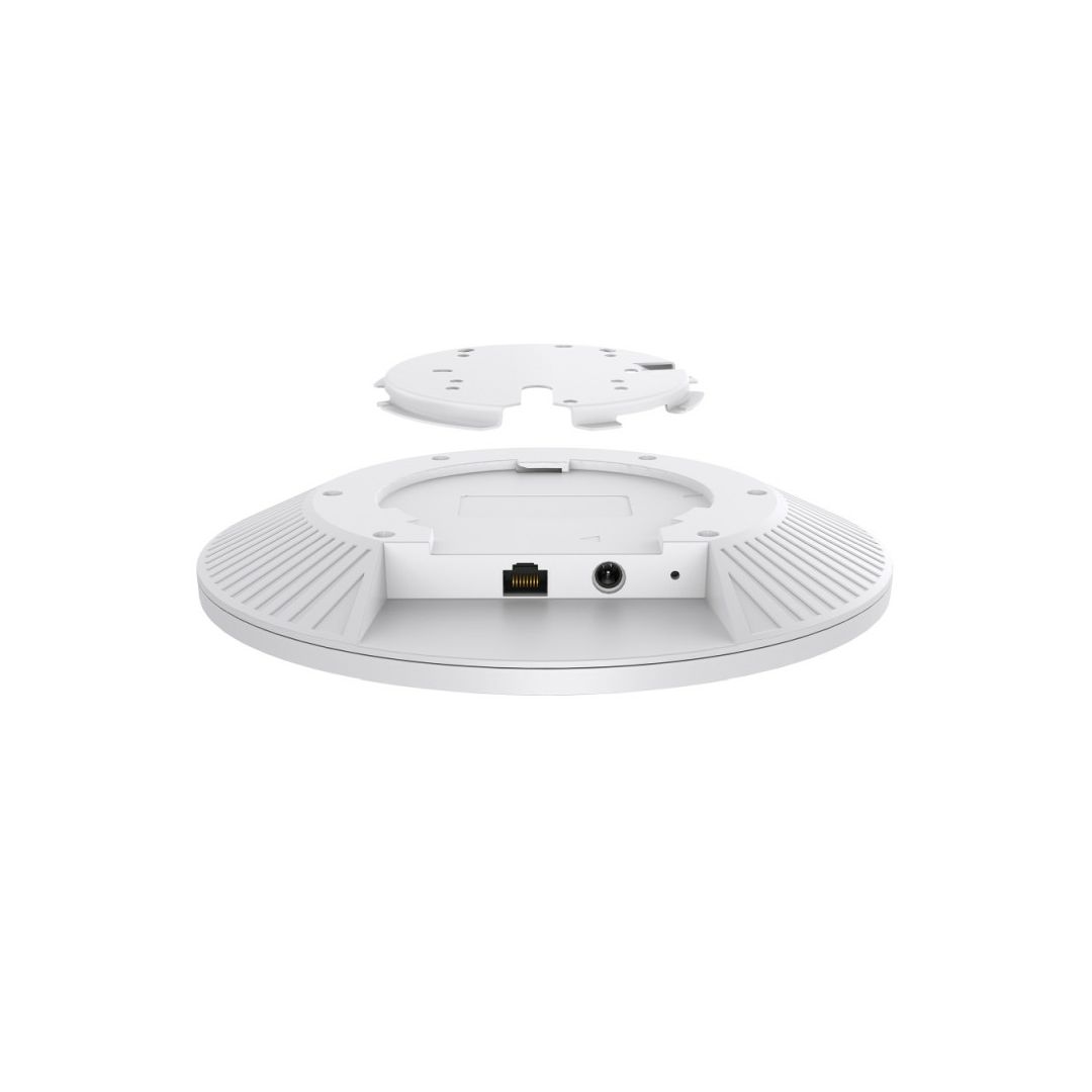 BE11000 Tri-Band Wi-Fi 7: – 5760 Mbps (6 GHz) + 4320 Mbps (5 GHz) + 574 Mbps (2.4 GHz). Buffering will no longer be a problem.1× 10G Port: – Unlock the full potential of Wi-Fi 7.Clear 6 GHz Band: – Brings cleaner and wider band resources to your Wi-Fi.320 MHz Bandwidth: – Up to 320 MHz bandwidth enables many more simultaneous transmissions at the fastest possible speeds.Low Latency and Interference: – Multi-Link Operation, and Multi-RUs ensure high performance of your network.Advanced Functions: – Supports centralized management, mesh, and AI roaming.SpecificationsHARDWARE FEATURES – Interface: 1× 10G Ethernet Port – Button: Reset – Power Supply: 802.3at PoE or 12V/2.5A DC – Notice: Due to the software update, the power supply has been updated from 802.3bt to 802.3at. – Power Consumption • 25.44 W (For PoE) • 22.57 W (For DC) – Dimensions ( W x D x H ): 8.7 × 8.7 × 1.3 in (220 × 220 × 32.5 mm) – Antenna Type • 2.4 GHz: 2× 4.0 dBi • 5 GHz: 2× 5.0 dBi • 6 GHz: 2× 5.0 dBi – Bluetooth: 1 × 4.0 dBi, Bluetooth 5.2*Firmware update may be required. – Mounting: Ceiling / Wall Mounting (Kits Included)WIRELESS FEATURES – Coverage: 140?(1500 ft2) – Concurrent Clients: 380+ – Wireless Standards: IEEE 802.11 a/b/g/n/ac/ax/be – Frequency: 6 GHz, 5 GHz, and 2.4 GHz – Signal Rate: 574 Mbps (2.4 GHz) + 4320 Mbps (5 GHz) + 5760 Mbps (6 GHz) – Wireless Functions • MLO • 4K-QAM • Seamless Roaming(802.11k/v/r) • MU-MIMO (2*2 DL/UL MU-MIMO) • HE320 • Mesh • BSS Coloring • OFDMA • Load Balance • Band Steering • Beamforming • Airtime Fairness • Multiple SSIDS:24(8 on each band) • Wireless Schedule • Reboot Schedule • QoS(WMM) • Rate Limit • Static IP/Dynamic IP • RADIUS Accounting • MAC Authentication – Wireless Security • Captive Portal Authentication • Access Control • Maximum number of MAC Filter: 4,000 • Wireless Isolation Between Clients • VLAN • Rogue AP Detection • WPA-Personal/Enterprise, WPA2-Personal/Enterprise, WPA3-Personal/Enterprise – Transmission Power MANAGEMENT – Omada App: Yes – Centralized Management • Omada Cloud-Based Controller • Omada Hardware Controller (OC300) • Omada Hardware Controller (OC200) • Omada Software Controller – Cloud Access: Yes. Require the use of an OC300, OC200, Omada Software Controller, or an Omada Cloud-Based Controller. – Email Alerts: Yes – LED ON/OFF Control: Yes – Management MAC Access Control: Yes – SNMP: v1, v2c, v3 – System Logging Local/Remote Syslog: Yes – Web-based Management: YesOTHERS – Certification: CE, FCC, RoHS, ICPackage Contents • EAP773 • Installation Guide • Ceiling/Wall Mounting Kits – Note: Power Adapter is NOT included.Environment • Operating Temperature: 0 C–40 C (32 F–104 F) • Storage Temperature: -40 C–70 C (-40 F–158 F) • Operating Humidity: 10%–90% non-condensing • Storage Humidity: 5%–90% non-condensing