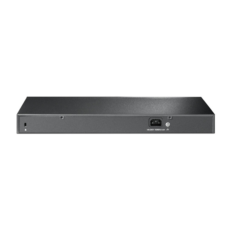 – Package Contents: TL-SG1218MPE, Power Cord, Installation Guide, Resource CD, Rackmount Kit, Rubber Feet