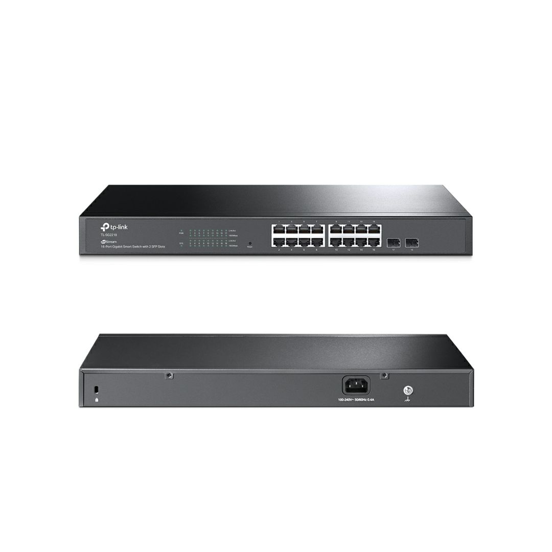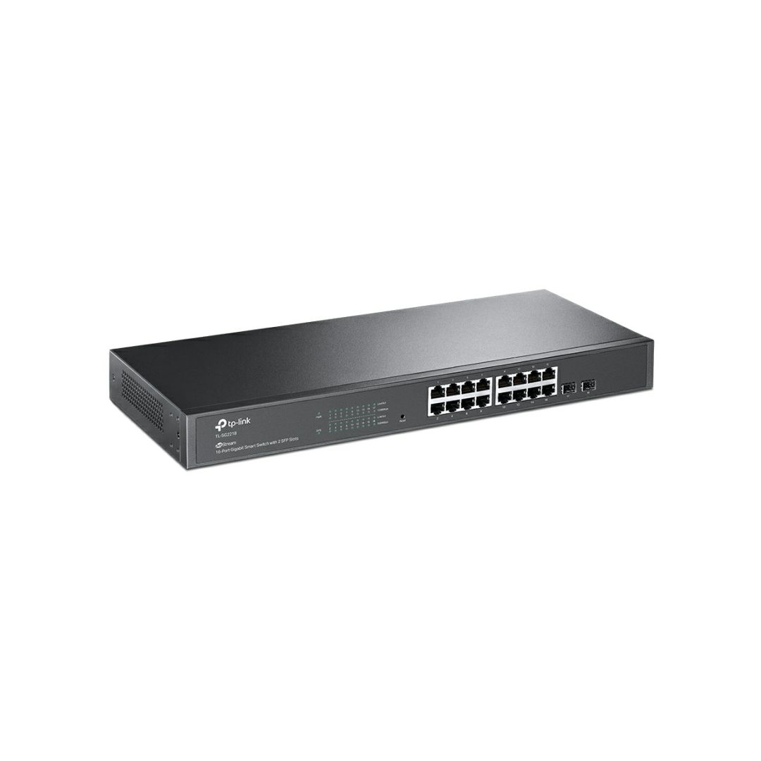 HARDWARE FEATURESInterface • 16× 10/100/1000 Mbps RJ45 Ports• 2× Gigabit SFP SlotsFan Quantity FanlessPower Supply 100-240 V AC~50/60 HzDimensions ( W x D x H ) 17.3 × 7.1 × 1.7 in (440 × 180 × 44 mm)Mounting Rack MountableMax Power Consumption 12.3 W (220 V/50 Hz)Max Heat Dissipation 41.97 BTU/hrPERFORMANCESwitching Capacity 36 GbpsPacket Forwarding Rate 26.8 MppsMAC Address Table 8KJumbo Frame 9 KBSOFTWARE FEATURESQuality of Service • 8 priority queues• 802.1p CoS/DSCP priority• Queue scheduling- SP (Strict Priority)- WRR (Weighted Round Robin)- SP+WRR• Bandwidth Control- Port/Flow based Rating Limiting• Smoother Performance• Action for Flows- Mirror (to supported interface)- Redirect (to supported interface)- Rate Limit- QoS RemarkL2 and L2+ Features • Link Aggregation- Static link aggregation- 802.3ad LACP- Up to 8 aggregation groups and up to 8 ports per group• Spanning Tree Protocol- 802.1d STP- 802.1w RSTP- 802.1s MSTP- STP Security: TC Protect, BPDU Filter, BPDU Protect, Root Protect, Loop Protect• Loopback Detection- Port-based- VLAN based• Flow Control- 802.3x Flow Control- HOL Blocking Prevention• Mirroring- Port Mirroring- CPU Mirroring- One-to-One- Many-to-One- Tx/Rx/BothL2 Multicast • Supports 511 (IPv4, IPv6) IGMP groups• IGMP Snooping- IGMP v1/v2/v3 Snooping- Fast Leave- IGMP Snooping Querier- IGMP Authentication• IGMP Authentication• MVR• MLD Snooping- MLD v1/v2 Snooping- Fast Leave- MLD Snooping Querier- Static Group Config- Limited IP Multicast• Multicast Filtering: 256 profiles and 16 entries per profileVLAN • VLAN Group- Max 4K VLAN Groups• 802.1q Tagged VLAN• MAC VLAN: 12 Entries• Protocol VLAN: Protocol Template 16, Protocol VLAN 16• GVRP• VLAN VPN (QinQ)- Port-Based QinQ- Selective QinQ• Voice VLANAccess Control List • Time-based ACL• MAC ACL- Source MAC- Destination MAC- VLAN ID- User Priority- Ether Type• IP ACL- Source IP- Destination IP- Fragment- IP Protocol- TCP Flag- TCP/UDP Port- DSCP/IP TOS- User Priority• Combined ACL• Packet Content ACL• IPv6 ACL• Policy- Mirroring- Redirect- Rate Limit- QoS Remark• ACL apply to Port/VLANSecurity • IP-MAC-Port Binding- DHCP Snooping- ARP Inspection- IPv4 Source Guard• IPv6-MAC-Port Binding- DHCPv6 Snooping- ND Detection- IPv6 Source Guard• DoS Defend• Static/Dynamic Port Security- Up to 64 MAC addresses per port• Broadcast/Multicast/Unicast Storm Control- kbps/ratio/pps control mode• IP/Port/MAC based access control• 802.1X- Port based authentication- Mac based authentication- VLAN Assignment- MAB- Guest VLAN- Support Radius authentication andaccountability• AAA (including TACACS+)• Port Isolation• Secure web management through HTTPS with SSLv3/TLS 1.2• Secure Command Line Interface (CLI) management with SSHv1/SSHv2IPv6 • IPv6 Dual IPv4/IPv6• Multicast Listener Discovery (MLD) Snooping• IPv6 ACL• IPv6 Interface• Static IPv6 Routing• IPv6 neighbor discovery (ND)• Path maximum transmission unit (MTU) discovery• Internet Control Message Protocol (ICMP) version 6• TCPv6/UDPv6• IPv6 applications- DHCPv6 Client- Ping6- Tracert6- Telnet (v6)- IPv6 SNMP- IPv6 SSH- IPv6 SSL- Http/Https- IPv6 TFTPL3 Features • 16 IPv4/IPv6 Interfaces• Static Routing- 48 static routes• Static ARP• 316 ARP Entries• Proxy ARP• Gratuitous ARP• DHCP Server• DHCP Relay• DHCP L2 RelayManagement • Web-based GUI• Command Line Interface (CLI) through console port, telnet• SNMPv1/v2c/v3- Trap/Inform- RMON (1, 2, 3, 9 groups)• SDM Template• DHCP/BOOTP Client• 802.1ab LLDP/LLDP-MED• DHCP AutoInstall• Dual Image, Dual Configuration• CPU Monitoring• Cable Diagnostics• EEE• Password Recovery• SNTP• System LogAdvanced Features • Support Omada Hardware Controller (OC200/OC300), Software Controller, Cloud-Based Controller• Automatic Device Discovery• Batch Configuration• Batch Firmware Upgrading• Intelligent Network Monitoring• Abnormal Event Warnings• Unified Configuration• Reboot Schedule• ZTP (Zero-Touch Provisioning)*OTHERSCertification CE, FCC, RoHSPackage Contents • TL-SG2218 Switch• Power Cord• Quick Installation Guide• Rackmount Kit• Rubber FeetEnvironment • Operating Temperature: 0–40 ? (32–104 ?);• Storage Temperature: -40–70 ? (-40–158 ?)• Operating Humidity: 10–90% RH non-condensing• Storage Humidity: 5–90% RH non-condensing