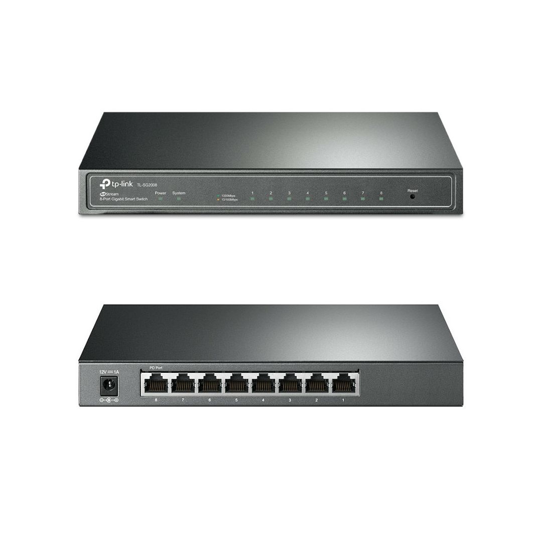 – Full Gigabit Ports: 8× gigabit RJ45 ports provide high-speed connections- Integrated into Omada SDN: Centralized Cloud Management, and Intelligent Monitoring- Centralized Management: Cloud access and Omada app for ultra convenience and easy management- Robust Security Strategies: 802.1Q VLAN, ACL, Port Security, Storm Control, and more- Optimize Voice and Video Applications: L2/L3/L4 QoS and IGMP snooping- Versatile Management: WEB/CLI managed modes, SNMP, and RMON bring abundant management featuresSpecificationsHARDWARE FEATURES- Standards and Protocols: IEEE 802.3i, IEEE 802.3u, IEEE 802.3ab, IEEE 802.3ad, IEEE 802.3x, IEEE 802.1d, IEEE 802.1s, IEEE 802.1w, IEEE 802.1q, IEEE 802.1p, IEEE 802.1x- Interface: 8× 10/100/1000Mbps RJ45 Ports (Auto-Negotiation/Auto MDI/MDIX)- Network Media:* 10BASE-T: UTP category 3, 4, 5 cable (maximum 100m)* 100BASE-TX/1000Base-T: UTP category 5, 5e or above cable (maximum 100m)- Fan Quantity: Fanless- Power Supply:* 12 VDC/1 A External Adapter or* Obtain Power from PoE Source- Power Consumption: 6.4 W (220 V/50 Hz)- Dimensions (W×D×H): 209×126×26 mmPERFORMANCE- Bandwidth/Backplane: 16 Gbps- Packet Forwarding Rate: 11.9 Mpps- MAC Address Table: 8K- Jumbo Frame: 9 KBSOFTWARE FEATURES- Quality of Service:* 802.1p CoS/DSCP priority* 8 priority queues* Priority Schedule Mode: SP (Strict Priority), WRR (Weighted Round Robin)* Queue Weight Config* Bandwidth Control: Port/Flow based Rating Limit* Smoother Performance* Storm Control: Multiple Control Modes(kbps/ratio), Broadcast/Multicast/Unknown-Unicast Control- L2 and L2+ Features:* 16 IP Interfaces: Support IPv4/IPv6 Interface* Static Routing: 32 IPv4/IPv6 Static Routes* DHCP Server* DHCP Relay: DHCP Interface Relay, DHCP VLAN Relay* DHCP L2 Relay* Static ARP* Proxy ARP* Gratuitous ARP* Link Aggregation: Static link aggregation, 802.3ad LACP, Up to 8 aggregation groups and up to 8 ports per group* Spanning Tree Protocol: 802.1D STP, 802.1w RSTP, 802.1s MSTP, STP Security: TC Protect, BPDU Filter/Protect, Root Protect* Loopback Detection* Flow Control: 802.3x Flow Control* Mirroring: Port Mirroring, CPU Mirroring, One-to-One, Many-to-One, Flow-Based, Ingress/Egress/Both* Device Link Detect Protocol (DLDP)* 802.1ab LLDP/ LLDP-MED- VLAN:* VLAN Group: Max. 4K VLAN Groups* 802.1Q tag VLAN* MAC VLAN: 12 Entries* Protocol VLAN* GVRP* Voice VLAN- Access Control List:* Support up to 230 entries* Time-Range: Time Slice, Week Time-Range, Absolute Time-Range, Holiday* Time-based ACL* MAC ACL: Source MAC, Destination MAC, VLAN ID, User Priority, Ether Type* IP ACL: Source IP, Destination IP, IP Protocol, TCP Flag, TCP/UDP Source Port, TCP/UDP Destination Port, DSCP/IP TOS* IPv6 ACL* Combined ACL* Rule Operation: Permit/Deny* Policy Action: Mirror, Rate Limit, Redirect, QoS Remark* ACL Rules Binding: Port Binding, VLAN Binding* Actions for flows: Mirror (to supported interface), Redirect (to supported interface), Rate Limit, QoS Remark- Security:* AAA* 802.1X: Port based authentication, MAC (Host) based authentication, Authentication Method includes PAP/EAP-MD5, MAB, Guest VLAN, Support Radius authentication and accountability* IP/IPv6-MAC Binding: 512 Binding Entries, DHCP Snooping, DHCPv6 Snooping, ARP Inspection, ND Detection* IP Source Guard: 253 Entries, Source IP+Source MAC* IPv6 Source Guard: 183 Entries, Source IPv6 Address+Source MAC* DoS Defend* Static/Dynamic/Permanent Port Security: Up to 64 MAC addresses per port* Broadcast/Multicast/Unicast Storm Control: kbps/ratio control mode* Port Isolation* Secure web management through HTTPS with SSLv3/TLS 1.2* Secure Command Line Interface (CLI) management with SSHv1/SSHv2* IP/Port/MAC based access control- Management:* Web-based GUI* Command Line Interface (CLI) through telnet* SNMPv1/v2c/v3* SNMP Trap/Inform* RMON (1,2,3,9 groups)* SDM Template* DHCP/BOOTP Client* Dual Image, Dual Configuration* CPU Monitoring* Cable Diagnostics* EEE* SNTP* System LogOTHERS- Certification: CE, FCC, RoHS- Package Contents: TL-SG2008, Power Adapter, Installation Guide, Rubber Feet- System Requirements: Microsoft Windows 98SE, NT, 2000, XP, Vista or Windows 7, MAC OS, NetWare, UNIX or Linux- Environment:* Operating Temperature: 0C to 40C (32F to 104F)* Storage Temperature: -40C to 70C (-40F to 158F)* Operating Humidity: 10% – 90% non-condensing* Storage Humidity: 5% – 90% non-condensing