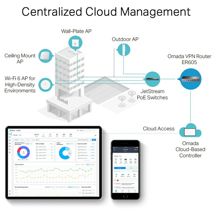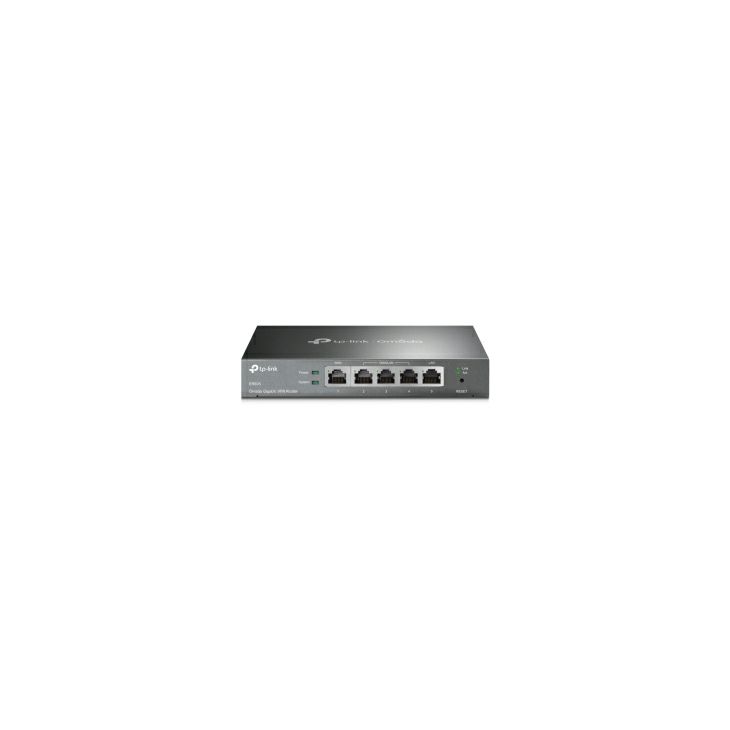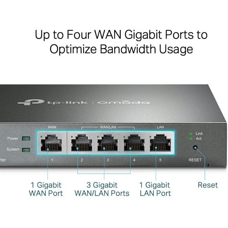 Features- Integrated into Omada SDN: Zero-Touch Provisioning***, Centralized Cloud Management, and Intelligent Monitoring.- Centralized Management: Cloud access and Omada app for convenience and easy management.- Five Gigabit Ports: High-speed wired connectivity.- Up to 3 WAN Ethernet Ports: 1 gigabit WAN port and 2 gigabit WAN/LAN ports with load balance raise the utilization rate of multi-line broadband.- One USB WAN Port for Mobile Broadband: Mobile broadband via 4G/3G modem is supported for WAN backup by connecting to the USB port.‡- Highly Secure VPN: Supports up to 20× LAN-to-LAN IPsec, 16× OpenVPN*, 16× L2TP, and 16× PPTP VPN connections.- Abundant Security Features: Advanced firewall policies, DoS defense, IP/MAC/URL filtering, and more security functions protect your network and data.SpecificationSECURITY- Access Control: Source/Destination IP Based Access Control- Filtering • WEB Group Filtering§• URL Filtering• Web Security§- ARP Inspection • Sending GARP Packets§• ARP Scanning§• IP-MAC Binding§- Attack Defense • TCP/UDP/ICMP Flood Defense• Block TCP Scan (Stealth FIN/Xmas/Null)• Block Ping from WANHARDWARE FEATURES- Standards and Protocols • IEEE 802.3, 802.3u, 802.3ab, IEEE 802.3x, IEEE 802.1q• TCP/IP, DHCP, ICMP, NAT, PPPoE, NTP, HTTP, HTTPS, DNS, IPSec, PPTP, L2TP, OpenVPN, SNMP- Interface• 1 Fixed Gigabit WAN Port• 2 Fixed Gigabit LAN Ports• 2 Changeable Gigabit WAN/LAN Ports• 1 USB 2.0 Port (Connecting 4G/3G Modem as WAN Backup‡)- Network Media • 10BASE-T: UTP category 3, 4, 5 cable (Max 100m) EIA/TIA-568 100? STP (Max 100m)• 100BASE-TX: UTP category 5, 5e cable (Max 100m) EIA/TIA-568 100? STP (Max 100m)• 1000BASE-T: UTP category 5, 5e, 6 cable (Max 100m)- Fan Quantity: Fanless- Button: Reset Button- Power Supply: External 12V/1A DC Adapter- PoE Budget: — Flash. 128 MB NAND- DRAM: 256 MB DDR- LED: PWR, SYS, WAN (Link/Act), LAN (Link/Act), USB- Dimensions ( W x D x H ): 6.2 × 4.0 × 1.0 in (158 × 101 × 25mm)- Protection: 4 kV surge protection- Enclosure: Steel- Mounting: Desktop/Wall-mount- Max Power Consumption: 7.94 WPERFORMANCE- Concurrent Session: 150,000- New Sessions /Second: 2,600- NAT (Static IP) • Upload: 945.77 Mbps• Download: 945.56 Mbps• Bi-Directional: 1808.29 Mbps- NAT(DHCP)• Upload: 945.93 Mbps• Download: 945.43 Mbps• Bi-Directional: 1808.11 Mbps- NAT(PPPoE) • Upload: 940.44Mbps• Download: 940.52 Mbps• Bi-Directional: 1804.27 Mbps- NAT (L2TP) • Upload: 845.64 Mbps• Download: 802.65 Mbps• Bi-Directional: 931.96 Mbps- NAT (PPTP)• Upload: 771.66 Mbps• Download: 874.81 Mbps• Bi-Directional: 999.54 Mbps- 64 Byte Packet Forwarding Rate • Upload/Download: 1,402,238 pps• Bi-Directional: 1,681,548 pps- IPsec VPN Throughput • ESP-MD5-AES256: 171.26 Mbps• ESP-SHA1-AES256: 224.86 Mbps• ESP-SHA2-AES256: 248.04 Mbps- OpenVPN • 21.70 Mbps- L2TP VPN Throughput • Unencrypted: 864.65 Mbps• Encrypted: 47.11 Mbps- PPTP VPN Throughput • Unencrypted: 703.20 Mbps• Encrypted: 76.65 Mbps- SSL VPN Throughput: — 66 Byte Packet forwarding rate • Upload/Download: 954.50 Mbps• Bi-Directional: 1130.00 Mbps- 1,518 Byte Packet forwarding rate • Upload/Download: 997.50 Mbps• Bi-Directional: 1965.00 MbpsBASIC FUNCTIONS- WAN Connection Type • Static/Dynamic IP• PPPoE• PPTP• L2TP• Mobile Broadband: 4G/3G modem for backup via USB port‡- MAC Clone: Modify WAN/LAN MAC Address†- DHCP • DHCP Server/Client• DHCP Address Reservation• Multi-net DHCP*• Multi-IP Interfaces*- IPv6: StaticIP / SLAAC / DHCPv6 / PPPoE / 6to4Tunnel / PassThrough- VLAN: 802.1Q VLAN- IPTV: IGMP v2/v3 Proxy, Custom Mode, Bridge ModeADVANCED FUNCTIONS- ACL: IP/Port/Protocol/Domain Name Filtering- Advanced Routing • Static Routing• Policy Routing- Bandwidth Control: IP-based Bandwidth Control- Load Balance • Intelligent Load Balance• Application Optimized Routing• Link Backup (Timing§, Failover)• Online Detection- NAT • One-to-One NAT§• Multi-Net NAT• Virtual Server• Port Triggering§• NAT-DMZ• FTP/H.323/SIP/IPSec/PPTP ALG, UPnP- Security • SPI Firewall• VPN Passthrough• FTP/H.323/PPTP/SIP/IPsec ALG• DoS Defence, Ping of Death• Local Management- Session Limit: IP-based Session LimitVPN- IPsec VPN• 20 IPsec VPN Tunnels• LAN-to-LAN, Client-to-LAN• Main, Aggressive Negotiation Mode• DES, 3DES, AES128, AES192, AES256 Encryption Algorithm• IKEv1/v2• MD5, SHA1 Authentication Algorithm• NAT Traversal (NAT-T)• Dead Peer Detection (DPD)• Perfect Forward Secrecy (PFS)- PPTP VPN • PPTP VPN Server• 10 PPTP VPN Clients**• 16 Tunnels• PPTP with MPPE Encryption- L2TP VPN• L2TP VPN Server• 10 L2TP VPN Clients**• 16 Tunnels• L2TP over IPSec- OpenVPN • OpenVPN Server*• 10 OpenVPN Clients*?• 16 OpenVPN Tunnels*AUTHENTICATION- Web Authentication • No Authentication• Simple Password*• Hotspot(Local User / Voucher* / SMS* / Radius*)• External Radius Sever• External Portal Sever*• Facebook*MANAGEMENT- Omada App: Yes. Requiring the use of OC300, OC200, Omada Cloud-Based Controller, or Omada Software Controller.- Centralized Management • Omada Hardware Controller (OC300)• Omada Hardware Controller (OC200)• Omada Software Controller• Omada Cloud-Based Controller- Cloud Access: Yes. Requiring the use of OC300, OC200, Omada Cloud-Based Controller, or Omada Software Controller.- Service: Dynamic DNS (Dyndns, No-IP, Peanuthull, Comexe)- Maintenance• Web Management Interface• Remote Management• Export & Import Configuration• SNMP v1/v2c/v3• Diagnostics (Ping & Traceroute)§• NTP Synchronize§• Syslog Support- Zero-Touch Provisioning: Yes. Requiring the use of Omada Cloud-Based Controller.- Management Features• Automatic Device Discovery• Intelligent Network Monitoring• Abnormal Event Warnings• Unified Configuration• Reboot Schedule• Captive Portal ConfigurationOTHERSCertification: CE, FCC, RoHS- Package Con