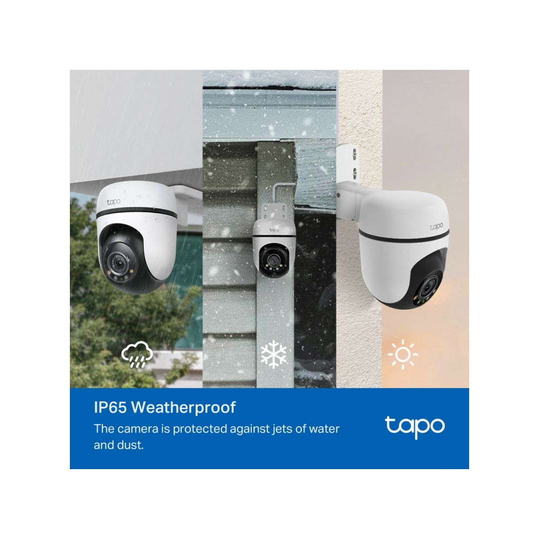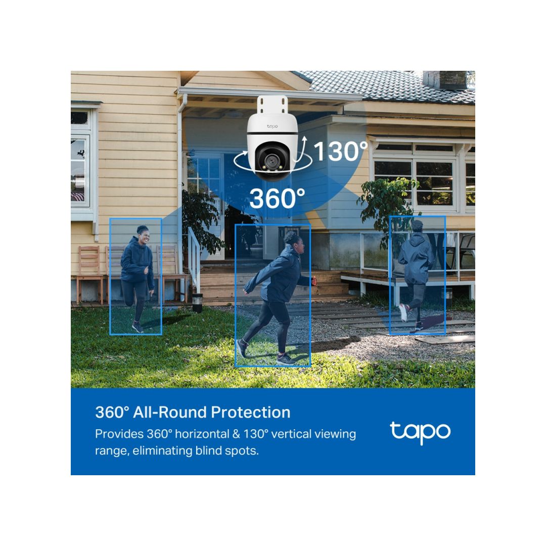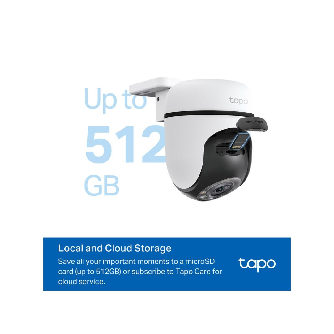 360° All-Round Protection: – Provides 360° horizontal & 130° vertical viewing range, eliminating blind spots.Person Detection: – Smart AI identifies a person accurately, sending instant notifications through the Tapo app.2K Resolution: – Sharper visuals in 2K resolution surpass standard 1080p.Color Night Vision: – Capture vibrant color night vision up to 30 meters away.IP65 Weatherproof: – The camera is protected against jets of water and dust, ideal for outdoors.Sound and Light Alarm: – Activate the integrated siren along with the spotlight alarm to deter unwelcomed intruders.Local and Cloud Storage: – Save all your important moments to a microSD card2 (up to 512GB) or subscribe to Tapo Care3 for cloud service.SpecificationsCAMERA – Image Sensor: 1/2.8″ Progressive Scan CMOS Sensor – Lens: • Focal Length: 3.9 mm • Aperture: F2.0 • Field of View: 97.23°(Diagonal), 82.3°(Horizontal),45.31°(Vertical) – Motion Range: • Pan Mechanical Range: 340° (360° Pan Coverage) • Tilt Mechanical Range: 60° (130° Tilt Coverage) – Night Vision: • 850 nm IR LED (98 ft / 29.9 m) • Color Night Vision – Lighting: 2× Built-in Spotlights – Interface & Button • 1× RESET Button • 1× MicroSD Card SlotVIDEO & AUDIO – Maximum Resolution: 2304 × 1296 px – Frame Rate: 30 fps – Video Compression: H.264 – Live View: Yes – Image Enhancement: 3DNRWDR – Audio Input & Output: Built-in Microphone and Speaker – Audio Communication: Two-Way Audio with Noise Cancellation – Siren Volume: 90 dB (Level measured at 4-inch/10-cm distance)GENERAL – Smart Integration: Google Assistant, Amazon Alexa – Weather Resistance: IP65 – System Requirements: Tapo App: iOS 9.0 or higher, Andriod 4.4 or higher – Mounting Options: • Ceiling-Mounted • Wall-Mounted • Pole-Mounted (Pole-Mounting loops required but not included) – Operating Temperature: -30?~60? – Storage Temperature: -40?~60? – Operating Humidity: 10%~90%RH, Non-condensing – Storage Humidity: 0~90%RH, Non-condensing – Dimensions: 4.9 × 4.8 × 3.5 in (123.8 × 123 × 90 mm) – Package Contents • Tapo C510W Camera • Power Adapter • Mounting Anchors • Mounting Screws • Bracket Screws • Mounting Template • Mounting Bracket • Waterproof Seal • Quick Start Guide – Certifications: CE, FCC, RoHS, RCMSTORAGE – Local Storage: MicroSD Card Slot on Camera (Up to 512 GB) – Cloud Storage: Tapo Care Cloud Storage Services (Subscription required)DETECTION and NOTIFICATIONS – AI Detection • Motion detection • Person detection • Tamper detection – Activity Zones: Yes – Output Notification: • System Notification • System Notification with Snapshot (Tapo Care Services)NETWORK – Network Connectivity: Connect via Wi-Fi – Wireless Connectivity: IEEE 802.11b/g/n, 2.4 GHz Wi-Fi – RTSP: Yes – ONVIF: YesSECURITY – Security: • On-Device Machine Learning • 128-bit AES Encryption with SSL/TLS • WPA/WPA2-PSKPOWER – Power Source: 12V DC Power Adapter – Input Voltage: 100-240 V, 50/60 Hz – Output Voltage: 9V, 0.85A (DC Power)
