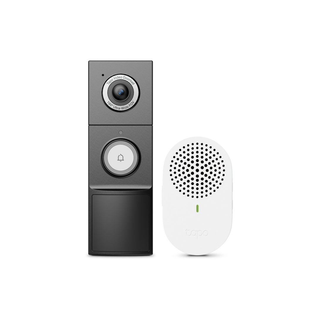 2K 5MP Head-to-Toe View – D235’s 4:3 aspect ratio captures a 180° field of view with high resolution.Smart AI Detection and Notification – Smart AI identifies people, pets, and packages, notifying users as needed.360 Days of Use – Tapo D235 supports being used for 360 days. No more worrying about missing what happens outside your door.Two-Way Audio – Enables communication through a built-in microphone and speaker.Powered by Hardwire or Battery – Place the doorbell anywhere you need.SpecificationsCAMERA – Image Sensor: 1/2.7“ Progressive Scan CMOS Sensor – Lens: Focal Length: 1.18mm – Aperture: F1.8 – Field of View: 170.6° (Horizontal), 140.1° (Vertical) – Night Vision: 850 nm IR LED (33 ft / 10 m) – Full-Color: Night Vision – Lighting: Built-in Spotlights – Interface & Button: • 1× RESET /SYNC Button • 1× Doorbell Button • 1× Anti-Theft Button • 1× Power ON/OFF ButtonVIDEO & AUDIO – Maximum Resolution: 2K 5MP (2560 × 1920px) – Frame Rate: 15/20 fps – Digital Zoom: 16x – Video Compression: H.264 – Live View: Yes – Image Enhancement • 3DNR • WDR – Audio Input & Output: Built-in Microphone and Speaker – Audio Communication: Two-Way Audio with Noise Cancellation – Siren Volume: 98dB (Level measured at 4-inch/10-cm distance)STORAGE – Local Storage: MicroSD Card Slot on Hub (Up to 512 GB) – Cloud Storage: Tapo Care Cloud Storage Services (Subscription required)DETECTION and NOTIFICATIONSSensor: • Single PIR Motion Sensor (FOV: 130° horizontal) • One Ambient Light Sensor – AI Detection • Motion Detection • Person Detection • Pet Detection • Vehicle Detection • Package Detection – Activity Zones: Yes – Only works with Motion Detection. – Output Notification • System Notification • System Notification with Snapshot (Tapo Care Services)NETWORK – Network Connectivity: IEEE 802.11b/g/n, 2.4 GHz Wi-FiSECURITY – Security • On-Device Machine Learning • 128-bit AES Encryption with SSL/TLS • WPA/WPA2-PSKPOWER – Power Source: • 10000 mAh Built-in Rechargeable Lithium-ion Battery • Hardwire charge • Hardwire supply – Input Voltage: Doorbell Battery Pack Adapter Input: 100-240 V, 50/60 Hz – Output Voltage: Doorbell Battery Pack Adapter Output: 5.0 V, 2.0 AGENERAL – Smart Integration: Google Assistant, Amazon Alexa – Weather Resistance: IP66 – System Requirements: Tapo App: iOS 9.0 or higher, Andriod 4.4 or higher – – Mounting Options • Stick to a Wall • Mount to a Wall – Operating Temperature: -20?~45? – Storage Temperature: -20?~45? – Operating Humidity: 10%~90% RH, Non-condensing – Storage Humidity: 0~90% RH, Non-condensing – Charging Temperature: 0-45? – Dimensions • Doorbell Dimensions: 5.91 × 1.97 × 1.52 in (150 × 50 × 38.4 mm) • Chime Dimensions: EU Version: 2.87 × 2.15 × 1.89 in (73×54.6×48 mm) – Package Contents • Tapo Video Doorbell × 1 • Tapo Chime × 1 • Mounting Template × 1 • Mounting Bracket × 1 • Vertical Mounting Wedge× 1 • Horizontal Mounting Wedge × 1 • USB Adapter Cable × 1 • Jumper for Existing Chime × 1 • Extension Wires × 2 • Mounting Screws and Anchors × 3 • Hardwire Installation Screws × 2 • Doorbell Detaching Pin × 1 • Mounting Wedge Screws × 5 • 3M Adhesive × 1 • Foam Pad × 1 • Wire Nuts × 2 • Quick Start Guide – Certifications: CE, RoHS, RCM,R-NZ,FCC, EAC, Triman, UKCA