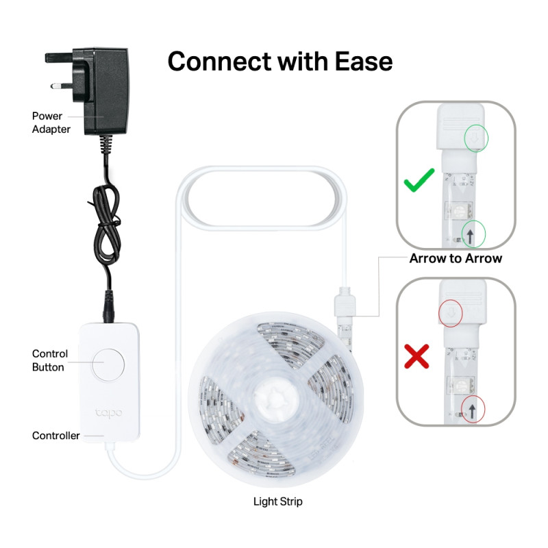 – Connect It Your Way – Use it with your smart assistant, a hub, or connect directly to the Tapo App. Control the Light Strip however you want.