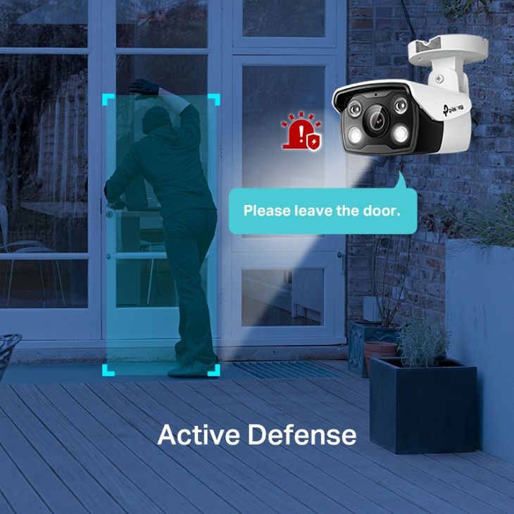 4MP Super-High Definition:- The camera comes with 4MP–more than enough pixels to pick up some of the more discrete details.24h Full-Color: – Obtain 24-hour color details, even in pitch-black conditions, with its large-aperture lens, high-sensitivity sensor, and attached supplemental lights.Human & Vehicle Classification: – Distinguishes humans and vehicles from other objects, so you receive more accurate event notifications.Smart Detection: – Receive notifications and check feeds when someone crosses a boundary, enters an area youve set, obstructs the camera, or removes/abandons objects.Active Defense: Warn potential intruders instantly with sound and light when abnormal events.Two-Way Audio: – Intelligently detect activities, inform you instantly and response automatically by smart detection and two-way audio.H.265+: – Without using any extra bandwidth, your cameras transmit compressed crystal-clear video to save disk space, ease network loads, and reduce monitoring costs without sacrificing image quality.Smart Video Enhancement: – VIGIs professional technologies process videos to greatly improve their quality that is vital to your monitoring, including Smart IR, WDR, 3D DNR, and Night Vision.IP67 Waterproof: – Reliable IP67 for stable outdoor performance.PoE/12V DC: – Two types of power supply not only give you more convenience but also make your wiring remarkably easy.Flexible Management and Storage: – Take full control over your security via four management methods: the web UI, NVR UI, VIGI app, and VIGI Security Manger. Local storage is available for each method, as well as onboard storage with SD card slot (up to 256GB).SpecificationsCAMERA- Image Sensor: 1/3” Progressive Scan CMOS- Shutter Speed: 1/3 to 1/10000 s- Slow Shutter: Yes- Aperture • 2.8 mm: F1.6• 4 mm: F1.6• 6 mm: F1.6- Lens: Fixed focal lens (2.8 mm / 4 mm / 6 mm)- Lens Mount: M12- Minimum Illumination: Color: 0.005 Lux; 0 Lux with IR/white light- Day/Night Mechanism: IR Cut Filter- Day/Night Switch. Day/Night/Auto/Schedule-Switch- Digital Noise Reduction: 3D DNR- WDR: DWDR- Weatherproof Rating: IP67- IR Working Distance: 30m- Viewing Angle • 2.8mm: Horizontal FOV: 96.1°, Vertical FOV: 52°, Diagonal FOV: 113.6°• 4mm: Horizontal FOV: 80°, Vertical FOV: 43.2°, Diagonal FOV: 94.2°• 6mm: Horizontal FOV: 49.3°, Vertical FOV: 26.8°, Diagonal FOV: 57.4°LENS- Type: Fixed Focal Lens- Focal Length: 2.8 mm/4 mm/6 mm- Aperture • 2.8 mm: F1.6• 4 mm: F1.6• 6 mm: F1.6- FOV • 2.8mm: Horizontal FOV: 96.1°, Vertical FOV: 52°, Diagonal FOV: 113.6°• 4mm: Horizontal FOV: 80°, Vertical FOV: 43.2°, Diagonal FOV: 94.2°• 6mm: Horizontal FOV: 49.3°, Vertical FOV: 26.8°, Diagonal FOV: 57.4°- Lens Mount: M12- DORI Distance: 2.8 mm• Detect: 64 m (209 ft)• Observe: 27 m (87 ft)• Recognize: 13 m (42 ft)• Identify: 6 m (21 ft)4 mm• Detect: 80 m (262 ft)• Observe: 33 m (109 ft)• Recognize: 16 m (52 ft)• Identify: 8 m (26 ft)6 mm• Detect: 128 m (420 ft)• Observe: 53 m (175 ft)• Recognize: 26 m (84 ft)• Identify: 13 m (42 ft)ANGLE ADJUSTMENT (MANUAL)- Range • Pan: -90° to 90°,• Tilt: -90° to 90°ILLUMINATOR- IR LED • Quantity: 2• Range: 30m• Wavelength: 850nm- White LED • Quantity: 2• Range: 30m- Illuminator On/Off Control: Auto/Scheduled/Always on/Always offVIDEO- Max. Resolution: 2560 X 1440- Main Stream Frame Rate:• 50Hz: 1fps, 5fps, 10fps, 15fps, 20fps, 25fps• 60Hz: 1fps, 5fps, 10fps, 15fps, 20fps, 25fps, 30fpsResolution:• 2560×1440, 2304×1296, 2048×1280, 1920×1080, 1280×720* Note: If the image rotation is set to 90° or 270°, the frame rate only supports up to 20fps.- Sub-Stream Frame Rate:• 50Hz: 1fps, 5fps, 10fps, 15fps, 20fps, 25fps• 60Hz: 1fps, 5fps, 10fps, 15fps, 20fps, 25fps, 30fpsResolution:• 640×480, 352×288, 320×240*Note: If the image rotation is set to 90° or 270°, the frame rate only supports up to 20fps.- Bit Rate Control: CBR, VBR- Video Compression • Main Stream: H.265+/H.265/H.264+/H.264• Sub-Stream: H.265/H.264- H.264 Type: Main Profile/High Profile- H.264+: Main Stream Supported- H.265 Type: Main Profile- H.265+: Main Stream Supported- Video Bit Rate: Main Stream: 256 Kbps to 4 Mbps- Sub-Stream: 64 Kbps to 512 KbpsIMAGE- Image Settings: Mirror, Brightness, Contrast, Saturation, Sharpness, Exposure, WDR, White Balance Adjustable by Client Software, Rotation(90°/270°)- Image Enhancement: BLC/3D DNR/HLC/SmartIR- Wide Dynamic Range: DWDR- SNR: ? 52 dB- Image Parameters Switch: Yes- Privacy Mask: Up to 4 Masks- ROI: 1 Region- OSD Setting: YesAUDIO- Audio Communication: Two-Way Audio- Audio Input: Yes- Audio Output: Yes- Audio Compression: Yes- Audio Sampling Rate: 8KHz- Environment Noise Filtering: Yes- Audio Bit Rate: 64 Kbps(G.711 alaw)NETWORK- Protocol: TCP/IP, UDP, ICMP, HTTP, HTTPS, DHCP, DNS, RTSP, NTP, UPnP UDP, SSL/TLS- ONVIF: Yes- API: Open Network Video Interface (Profile S)- Simultaneous Live View: Up to 6 Channels- Client: VIGI App, VIGI Security Manager, VIGI NVR, Web- Web Browser • Google Chrome 57 and above• Firefox 52 and above• Safari 11 and above• Microsoft Edge 91 and above- Cloud: Yes- Security: Password Protection, HTTPS Encryption, IP Address Filter, Digest Authentication- Network Storage: NAS (NFS, SMB/ CIFS)ALARM AND EVENT MANAGEMENT- Smart Event: Human & Vehicle Classification, Area Intrusion Detection, Line-Crossing Detection, People Detection, Vehicle Detection, Region Entering Detection, Region Exiting Detection, Object Abandoned Detection, Object Removal Detection- Basic Event: Motion Detection, Video Tampering Detection, Exception ( Illegal Login)- Alarm Linkage: Memory Card Video Recording, Message Push, Audible Warning, White Light Flashing- Output Notification: Message PushDEEP LEARNING FUNCTION- Multi-Target-Type Detection • Supports Simultaneous Detection and Capture of• Human Body and Vehicle- Perimeter Protection • Motion, Line Crossing, Intrusion, Region