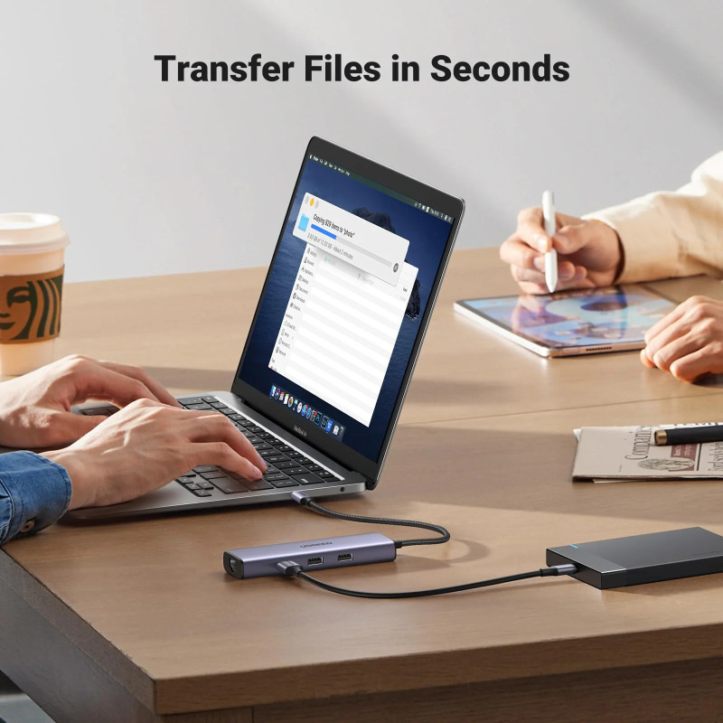 – Ovaj USB C Hub nudi svestran raspon priključaka, uključujući 1000 Mbps Ethernet, 4K HDMI, 100 W USB-C PD i tri 5 Gbps USB-A podatkovna priključka.