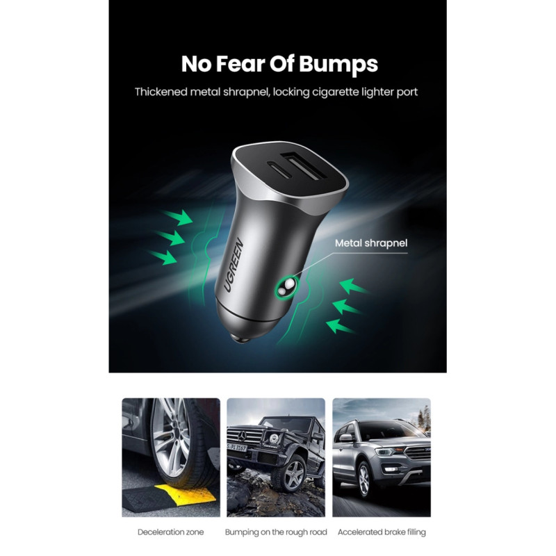 Ugreen brzi auto punjač USB-A / USB-C 30W PD PPS sivi (CD130)