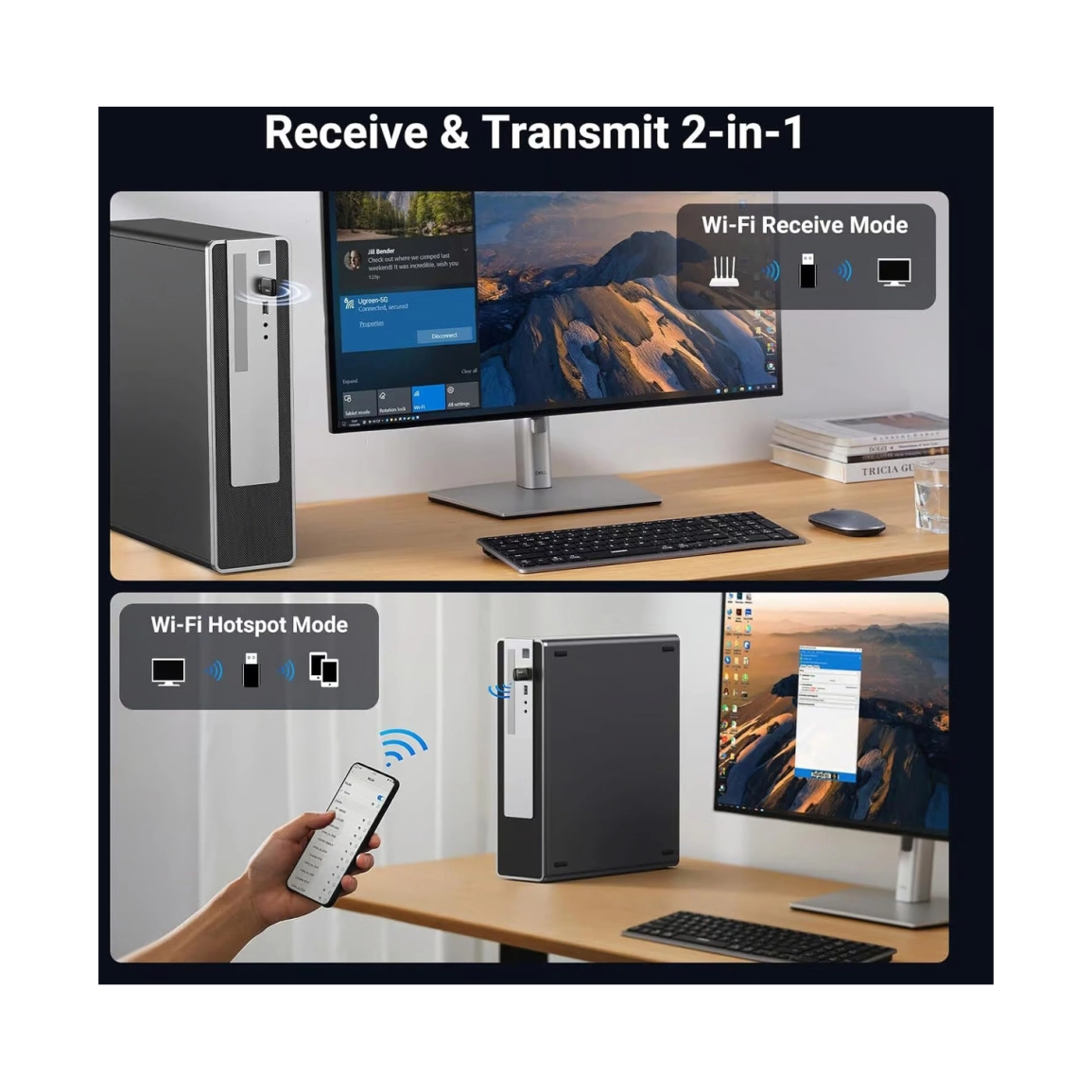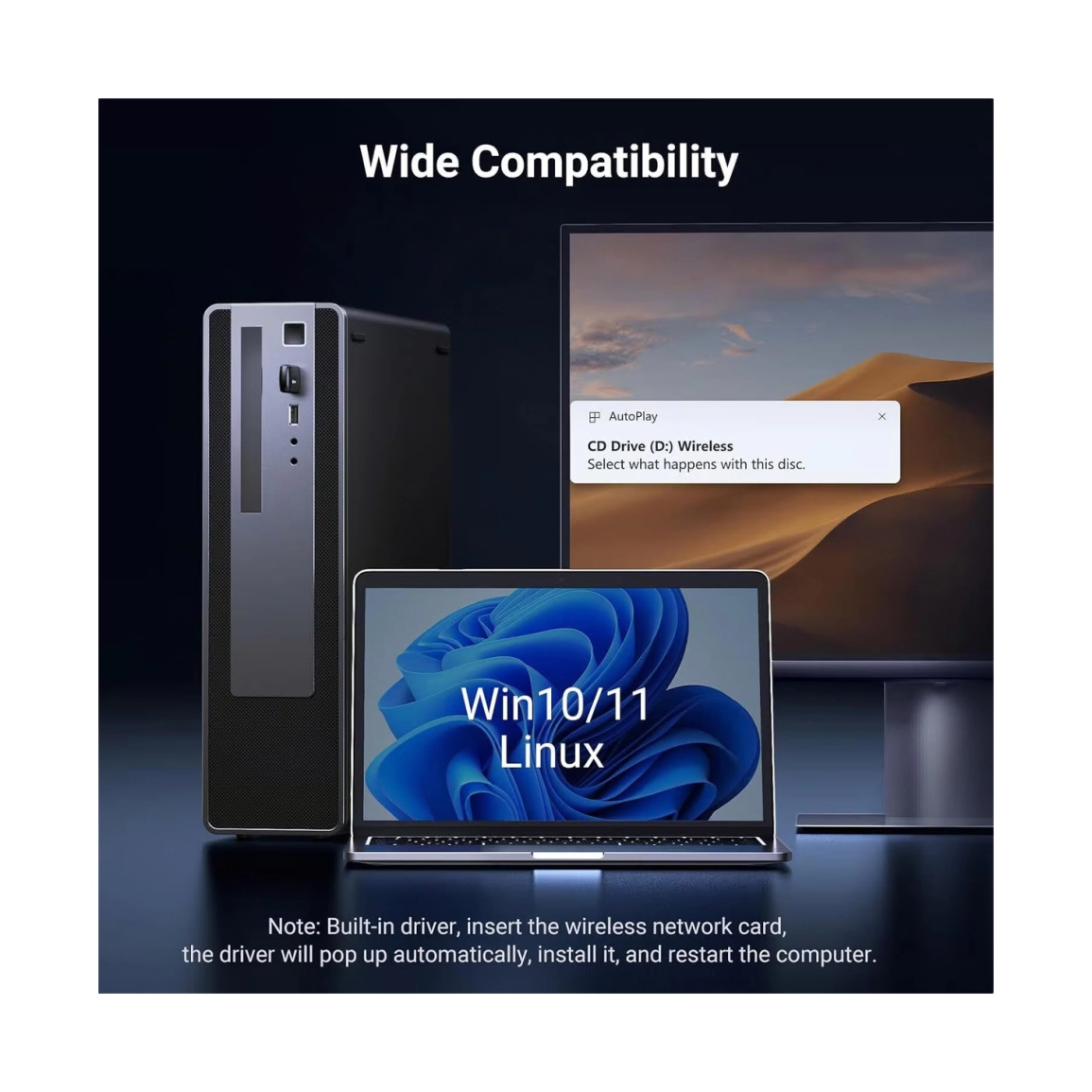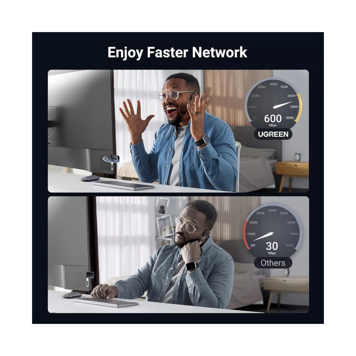 USB Wi-Fi 6 adapter – dual-band AX900: UGREEN 35264 je kompaktni USB adapter koji vaš uređaj oprema brzim Wi-Fi 6 povezivanjem. Pruža kombiniranu brzinu do 900 Mbps (600 Mbps na 5 GHz + 287 Mbps na 2,4 GHz), idealan za streaming, online igre i brzo preuzimanje bez kabelske veze.