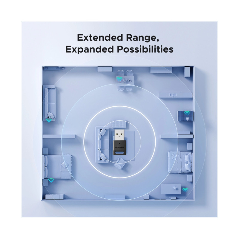 – UGREEN USB Bluetooth adapter opremljen je najnovijom Bluetooth 5.4 tehnologijom, optimizirajući kašnjenje prijenosa i probleme s greškama u povezivanju starog Bluetootha 5.0. Naš Bluetooth 5.4 adapter pružit će vam bržu, stabilniju i pametniju vezu s manjim gubitkom kvalitete zvuka.