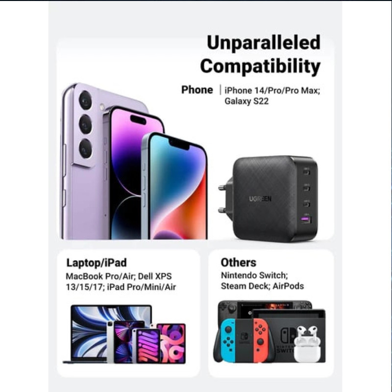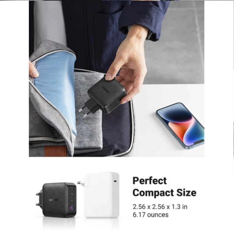 UGREEN GaN Tech zidni punjač 65W, 1×USB-A/3×USB-C, PD3.0/QC4.0+, crni