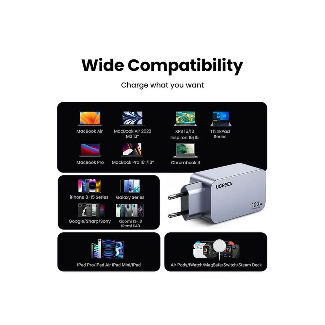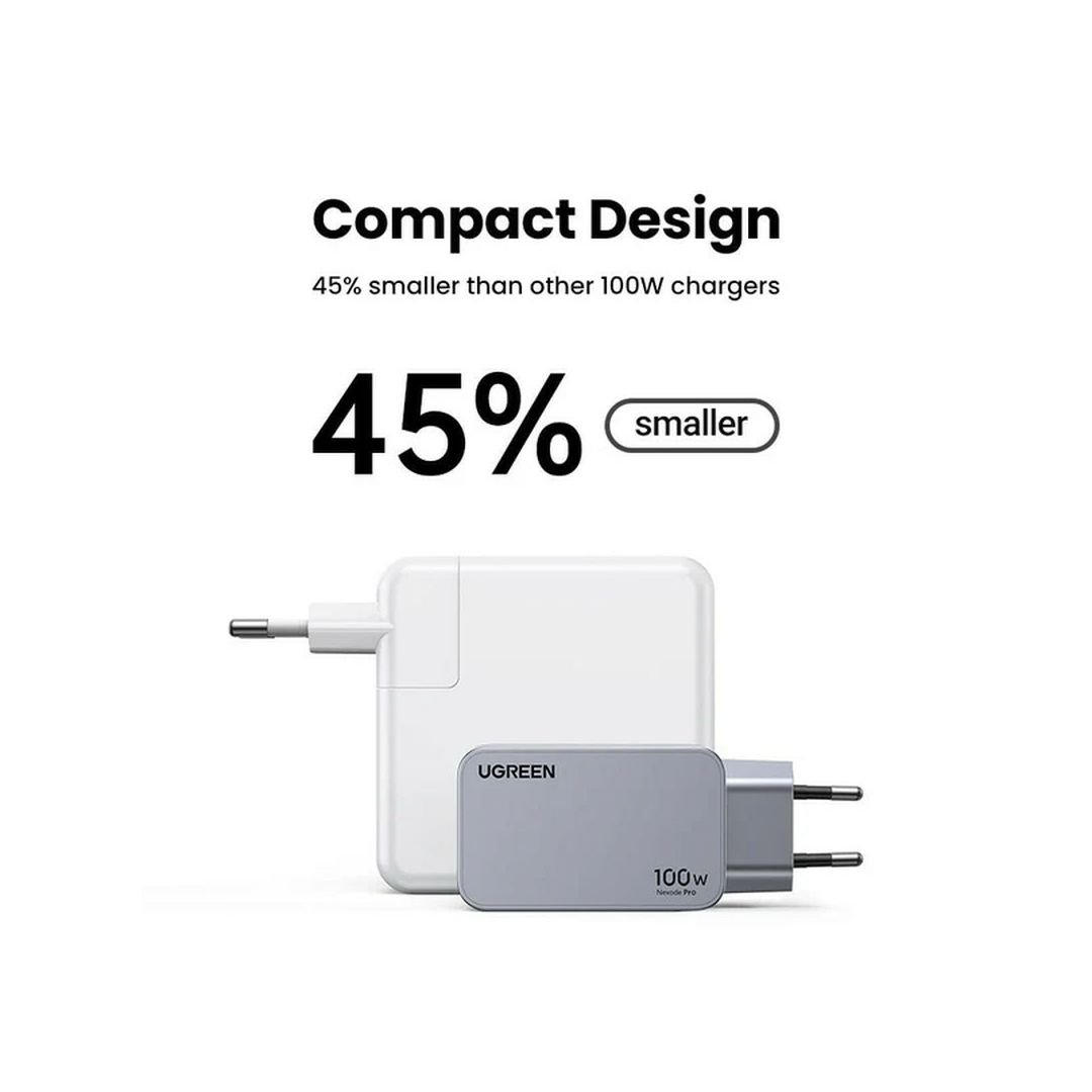 3-portni USB-C punjač za prijenosno računalo: – Brzo punjenje 3 uređaja istovremeno s inteligentnom raspodjelom snage (do 100 W).100W punjač za MacBook Pro: – USB-C1 priključak isporučuje punih 100 W, puneći MacBook Pro 14 od 0 do 50% za samo 27 minuta.Inteligentni GaNInfinity čip: – Brže i učinkovitije punjenje s manje zagrijavanja u kompaktnom dizajnu.Vrhunska kompatibilnost: – Radi s MacBookom, Dellom, HP-om, iPadom, iPhoneom, Galaxyjem i drugima.Sveobuhvatna zaštita: – Inteligentni čipovi štite od kratkih spojeva, prenapona, previsoke temperature i preopterećenja strujom.Specifikacije – SKU: 15203 – Ukupno USB priključaka: 2x USB-C i 1x USB-A – Ulaz: 100-240V~50/60Hz 1.8A Max – Ukupna izlazna snaga: 100W – GaN tehnologija – Dimenzije: 71 × 43 × 33 mm – Što je u kutiji: * Nexode Pro Charge ×1 * Kratki vodič ×1