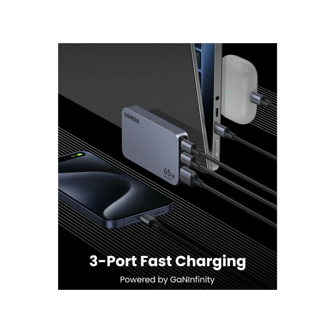 Globalno spreman: – Putujte besprijekorno s fiksnim američkim utikačem i izmjenjivim UK/EU adapterima, koji vas pokrivaju diljem svijeta.Trostruka snaga: – Punite 3 uređaja istovremeno putem 2 USB-C i 1 USB-A priključka, inteligentno raspoređujući ukupnu snagu od 65 W za optimalno punjenje.Brzo punjenje: – Oslobodite superbrzo punjenje, napunite MacBook Air M2 do 50% u 30 minuta i potpuno napunite Galaxy S23.GaNInfinity snaga: – Naša vrhunska GaN tehnologija pruža nevjerojatnu učinkovitost, minimalnu toplinu i elegantan dizajn koji odgovara uskim prostorima.Univerzalna kompatibilnost: – Radi besprijekorno s MacBook Pro/Air, iPhone 15/14/13, Galaxy S24, iPad Pro, Pixel i drugima, podržavajući Samsungov 45W Super Fast Charge 2.0.Specifikacije – SKU: 25356 – Ulaz: 100-240V~50/60Hz 1,8A Max – Izlazna snaga: 65 W maks – USB-C1: 5V/3A 9V/3A 12V/3A 15V/3A 20V/3,25A 65W maks. – PPS: 3,3-11V/4,5A – USB-C1: 5V/3A 9V/3A 12V/2,5A 30W maks. – PPS: 3,3-11 V/2,75 A – USB-A: 5V/3A 9V/3A 12V/1,5A 10V/2,25A 22,5W – Dimenzije (mm) (85*49*15)±0.5mm