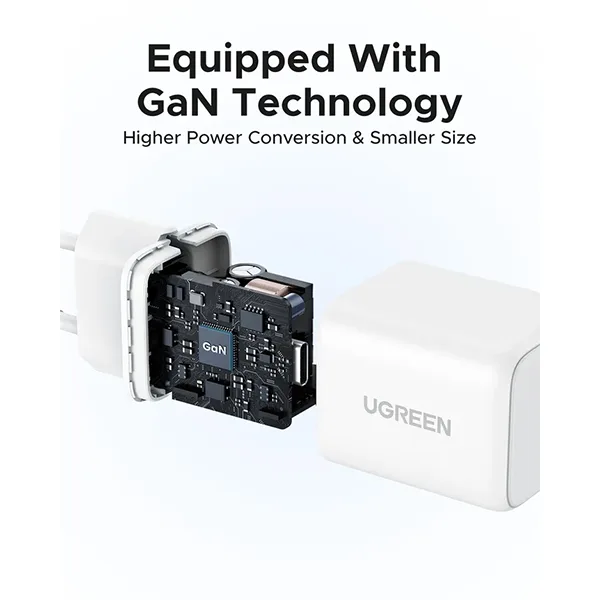 Kompaktan GaN USB-C punjač – 20 W: UGREEN 55554 je snažni i kompaktni USB-C punjač opremljen GaN (galij-nitrid) tehnologijom, koja omogućuje visoku učinkovitost i minimalno zagrijavanje. Idealan je za brzo punjenje telefona, tableta i drugih uređaja bilo kod kuće, u uredu ili na putu.
