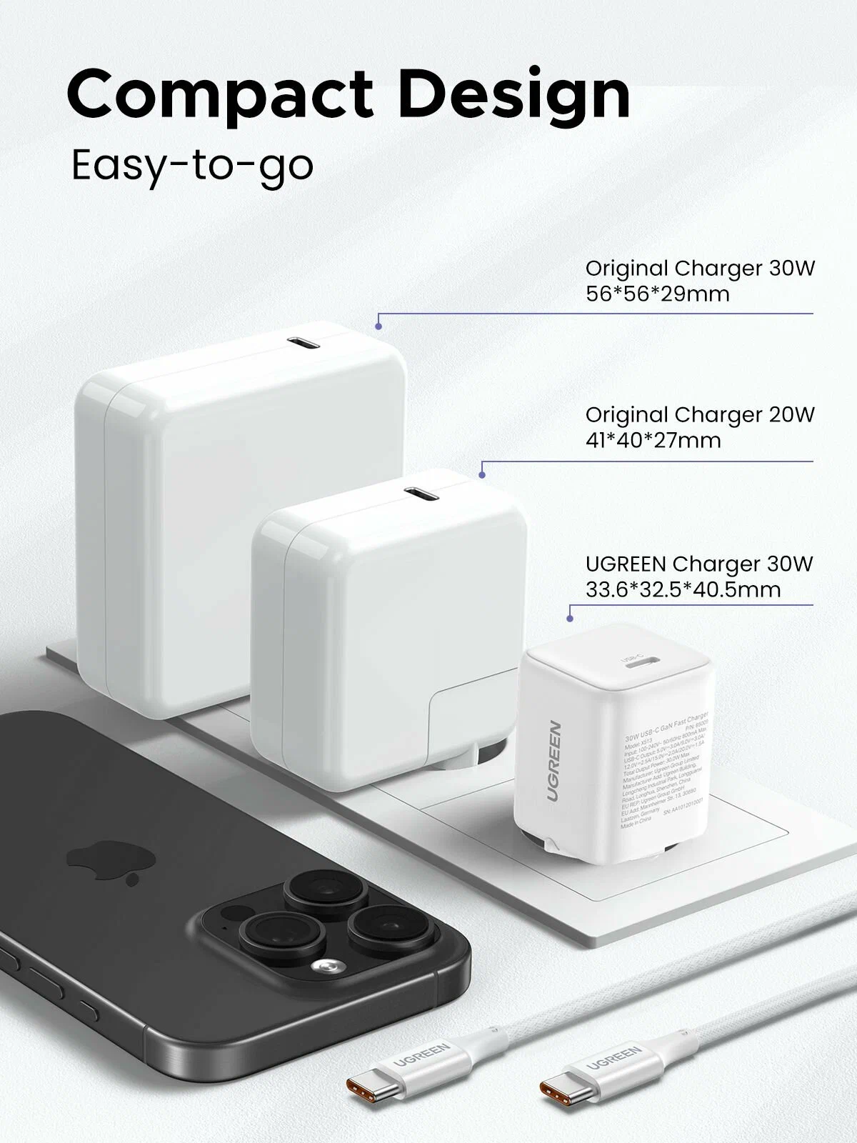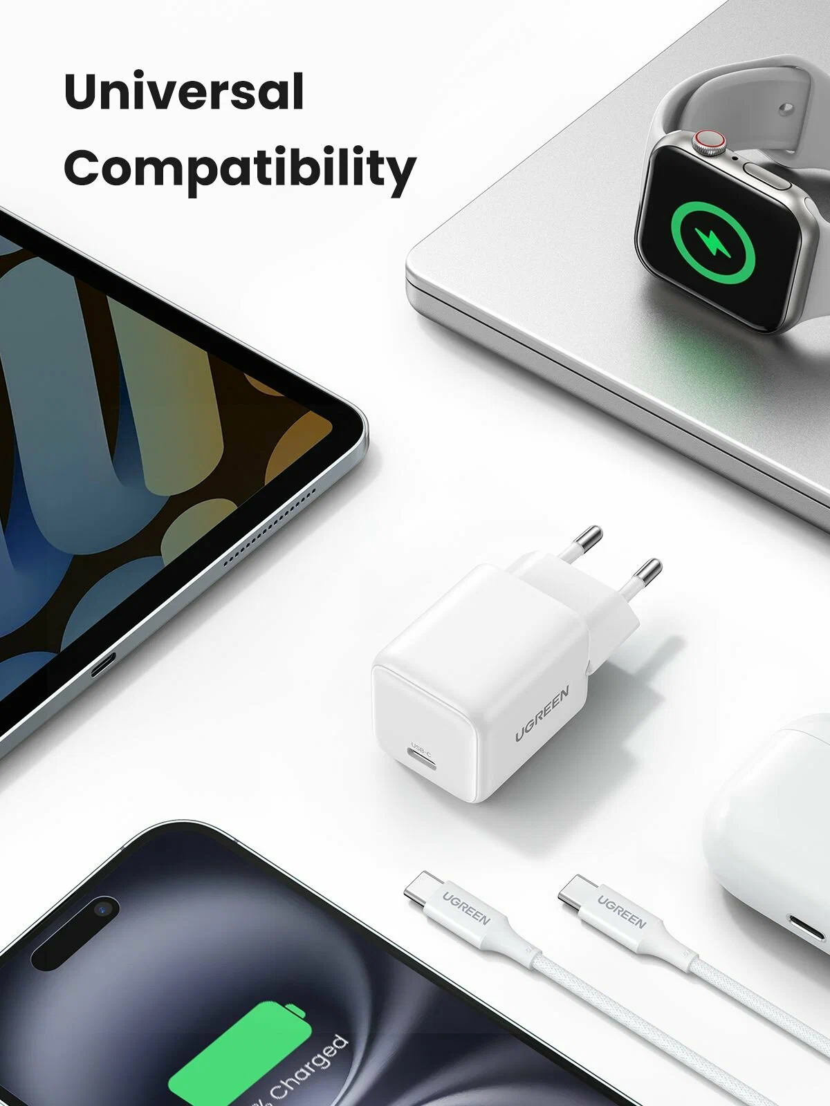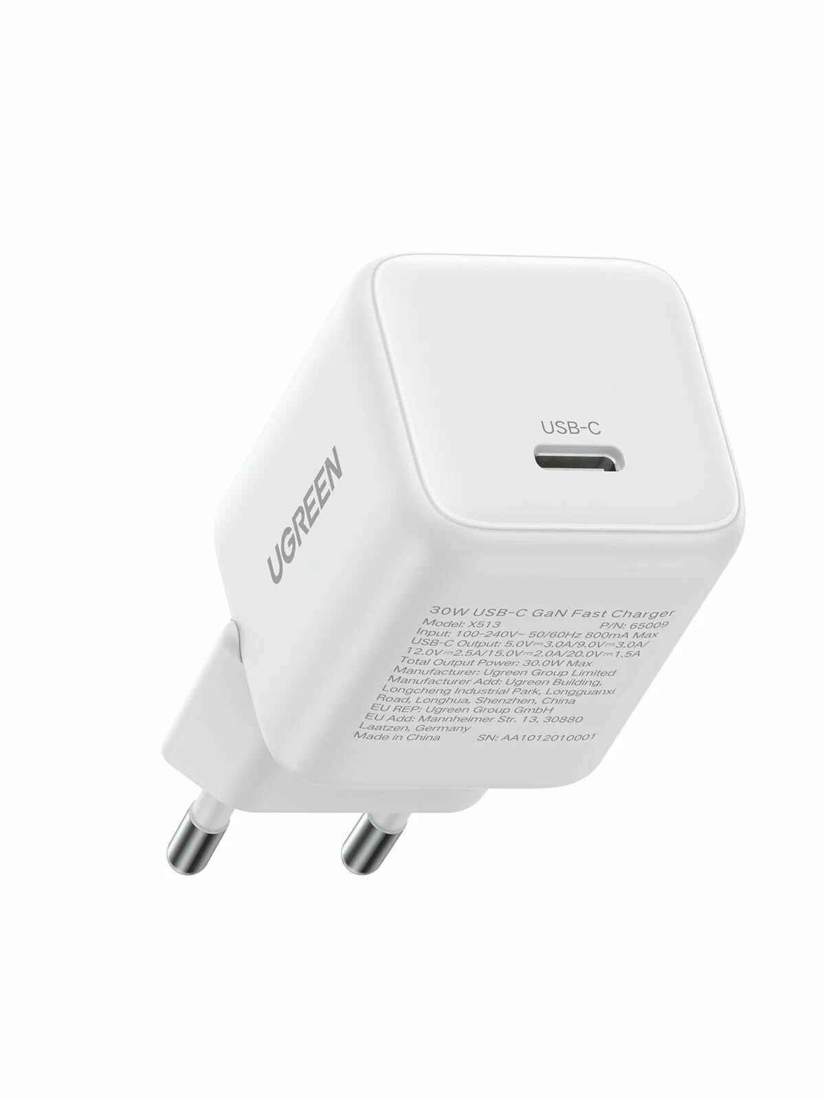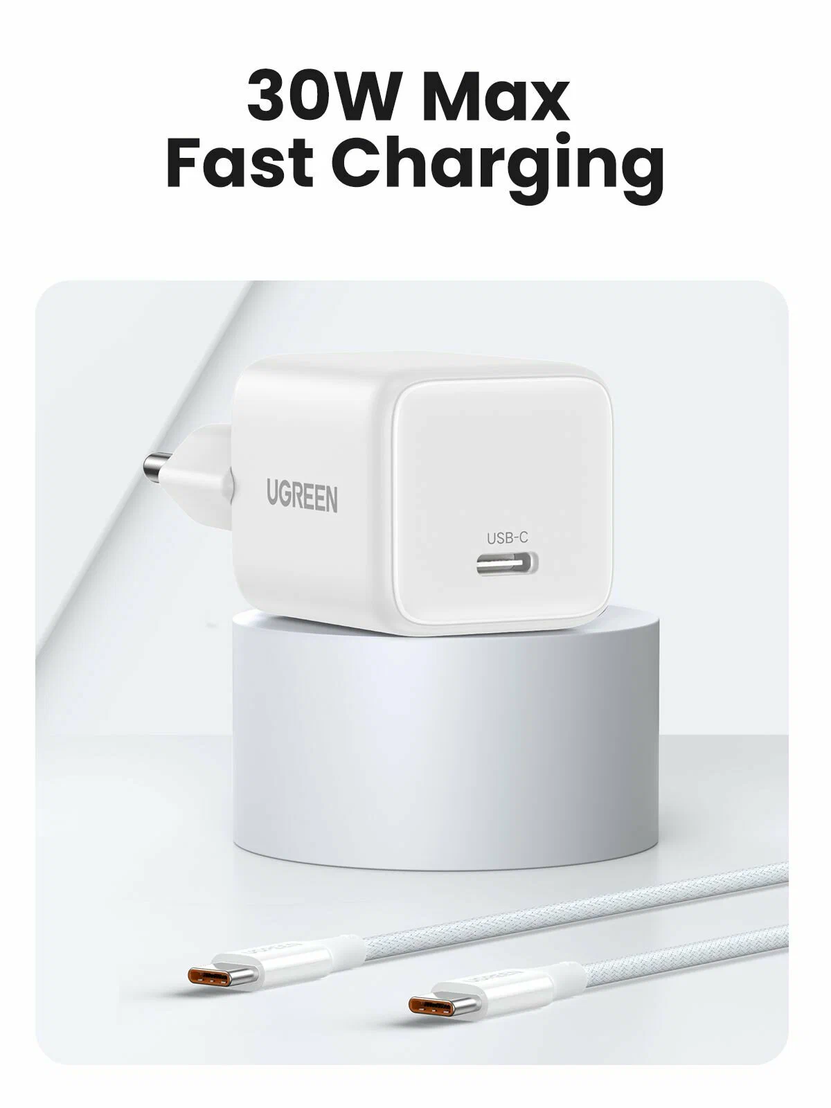 Kompaktan GaN USB-C punjač – 30 W: UGREEN 65013 (model X513) je svestrani punjač opremljen naprednom GaN II tehnologijom, koja omogućuje visoku učinkovitost i nisko zagrijavanje, a istovremeno zadržava ultra kompaktnu veličinu. Idealan je za brzo punjenje telefona, tableta, prijenosnika (manje snage) te drugih uređaja kod kuće, u uredu ili na putu.
