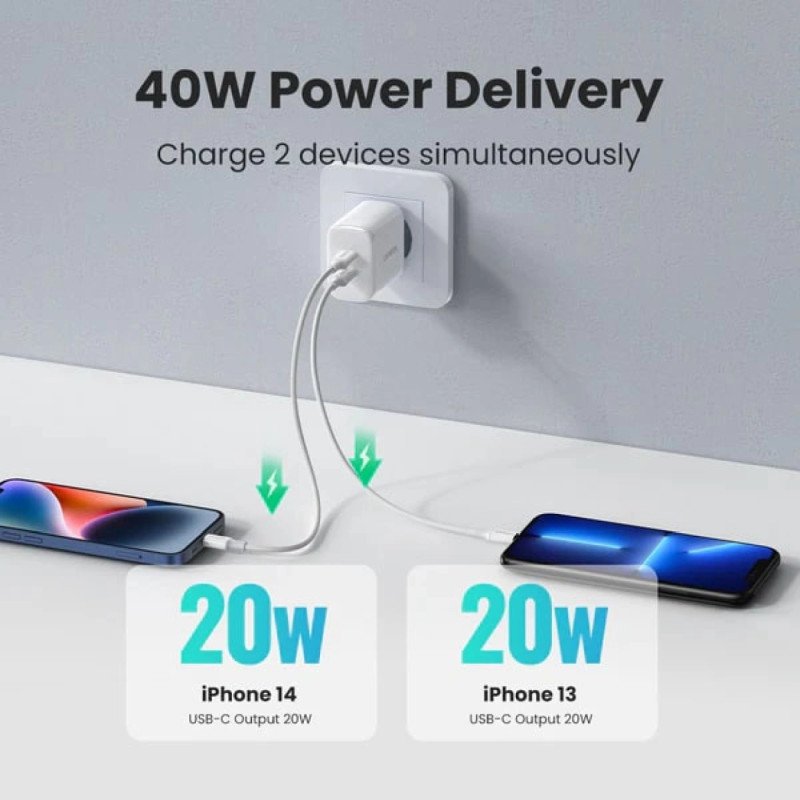 – Inteligentni zidni punjač s europskim priključkom i podrškom za brzo punjenje od 18 W. Kompaktni gadget opremljen s 2x USB Type-C PD priključka. Savršen za obnavljanje energije mobilnih uređaja poput pametnih telefona, tableta ili čak prijenosnih računala.