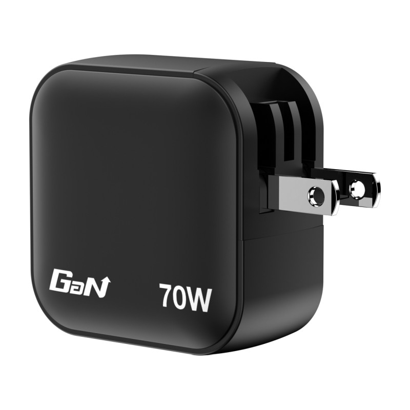 – 70W mini GaN wall charger with 3 output ports: 2 x USB-C® PD 70W and 1 x USB-A QC 3.0