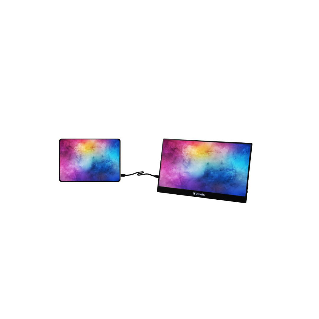 Touchscreen Control- The Verbatim Portable Touchscreen Monitor gives you an extra dimension for your work and play. You can use it as a second screen for your laptop when you are travelling or giving one-on-one presentations, or to provide a large additional display for your phone, tablet, or portable gaming system. Compact and versatile, the portable monitor gives you ultimate flexibility for increased productivity and entertainment while on the go.The responsive and intuitive touch screen with 10-point touch functionality supports swipe, scroll, drag, and pinch gestures to help you get your tasks done efficiently. It’s the ideal solution to help you overcome one-screen limitations outside the office, extending your visual experience, anytime and anywhere.Full HD resolution- Delivering 16.7M colours in 1080p or full HD, the Verbatim Portable Monitor utilizes in-plane switching technology (IPS) to produce a sharper and more accurate picture and wide viewing angle on its 16:9 screen. The built in kickstand enables the monitor to be set up at the angle that suits you best in a position of your choice helping to improve comfort and overall productivity.The display incorporates high-dynamic range (HDR) technology which improves picture quality – significantly expanding the range of both contrast and colour – giving the image more “depth” and creating a fantastic viewing experience.One cable connection- The portable monitor connects via USB-C meaning that power, data, and video is all transferred using a single cable. Just connect it to your laptop, Mac, tablet, phone, or games console, and start sharing screens!* There is also an HDMI cable included for those requiring connection via HDMI. Using HDMI requires the use of a power supply, which is also included. For touch function support, an additional USB cable is required. The power supply also supports longer use for devices connected via USB-C.Lightweight and slimline, the portable touchscreen monitor easily fits most travel bags. Built in a solid and durable aluminium housing and with an included Neoprene protective sleeve, it’s a perfect companion for those trips away.*Ensure your device has a USB-C port supporting DisplayPort Alt Mode and power delivery.Features- Portable monitor with Full HD resolution of 1920 x 1080 and 16.7M colours- Supports capacitive 10-point multi-touch with G+G technology; simply connect the monitor to your device using a USB-C cable- IPS Panel incl. full viewing angle of 178° and 16:9 screen ratio- Solid and durable aluminium housing- HDR technology improves picture quality creating a fantastic viewing experience- Great compatibility for work/traveling/gaming: Connect the portable monitor to your PC/Mac/Tablet/Phones/Consoles with USB-C or HDMI- One Cable Solution: Plug and play setup of compatible devices via USB-C connection- Ultra slim and light weight design with integrated speaker- Audio jack to connect headphones or speaker- Neoprene protective sleeve includedSpecifications- Size: 17.3 inch- Dimensions (WxHxD): 396 (H) x 236 (V) x 8/13.5mm (D) (Min/Max)- Net weight: 1630g- Panel: Capacitive Touch Panel, IPS Technology- Panel type: 10-point multi-touch with G+G technology- Contrast (typical): 1200:1- Resolution (H x V): 1920 x 1080- Aspect ratio: 16:9- Brightness: 300 cd/m2- Response Time (Typical GTG): 6ms- Response Time (Typical Tr+Tf): 11+9 ms- Response Time (BtW): 10ms- View angles LR,UD (CR>10): H 178°/ V 178°(Min)- Display colours: 16.7M colours- Input 1: USB-C x 2 (Full-featured USB-C)- Input 2: Standard HDMI (1.4) x 1- Input 3: USB-A 2.0 x 1- Output: 3.5 mm Audio jack- Supports: HDR, FreeSync, Low Blue Light- Stand: Built-in kickstand, Tilt: from 0° up to 85°- Frame material: Aluminium- Energy Efficiency Rating: A- OS Compatibility:• Android OS• Windows 11/10/8• Mac OS• iOS (Adapter required for Lightning devices, not included; Touchscreen function not supported by iOS/iPadOS)Pack Contents- Verbatim PMT-17 Portable Touchscreen Monitor 17.3″ Full HD 1080p Metal Housing- USB-C to USB-C Cable 1.0M- HDMI-HDMI Cable 1.5M- USB-A to USB-C Cable 1.5M- EU power supply with UK adapter (5V 3A)- Neoprene Protection Sleeve- Quick Start Guide