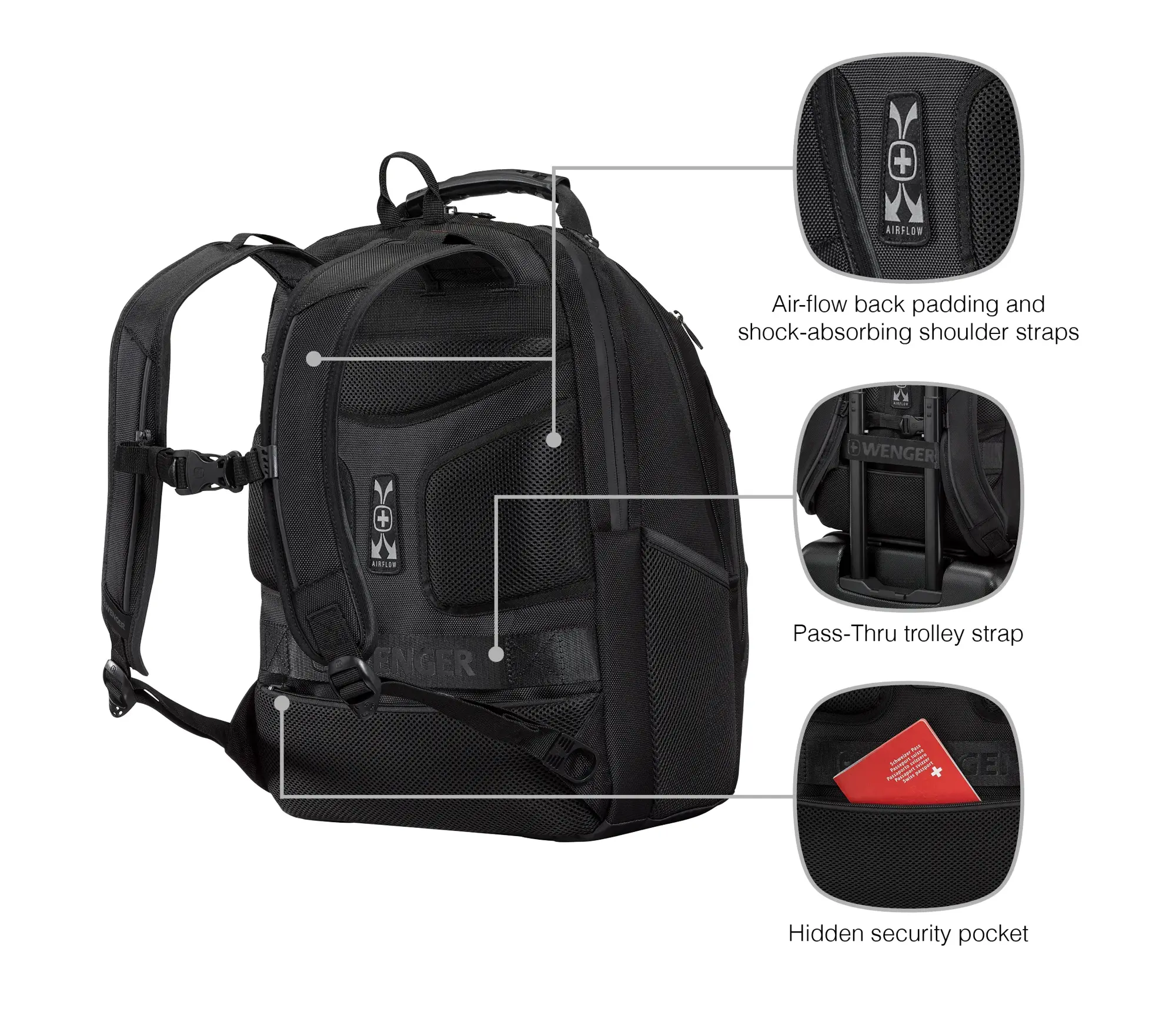 – Airflow back padding keeps wearer cool