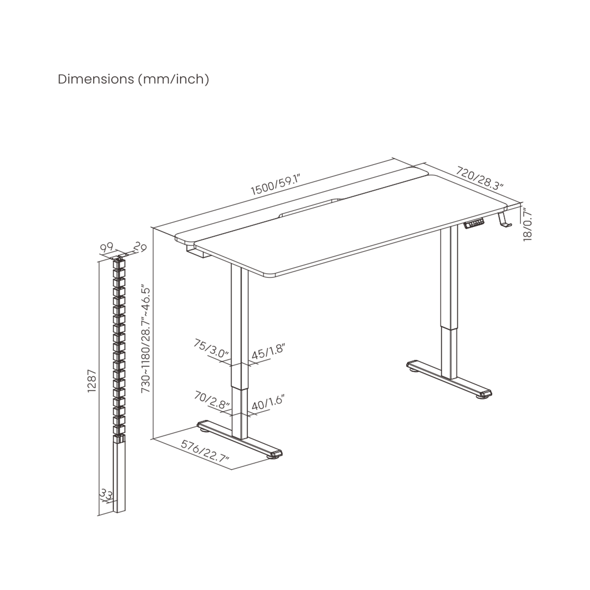 Dimenzije radne površine (mm): 1500×720