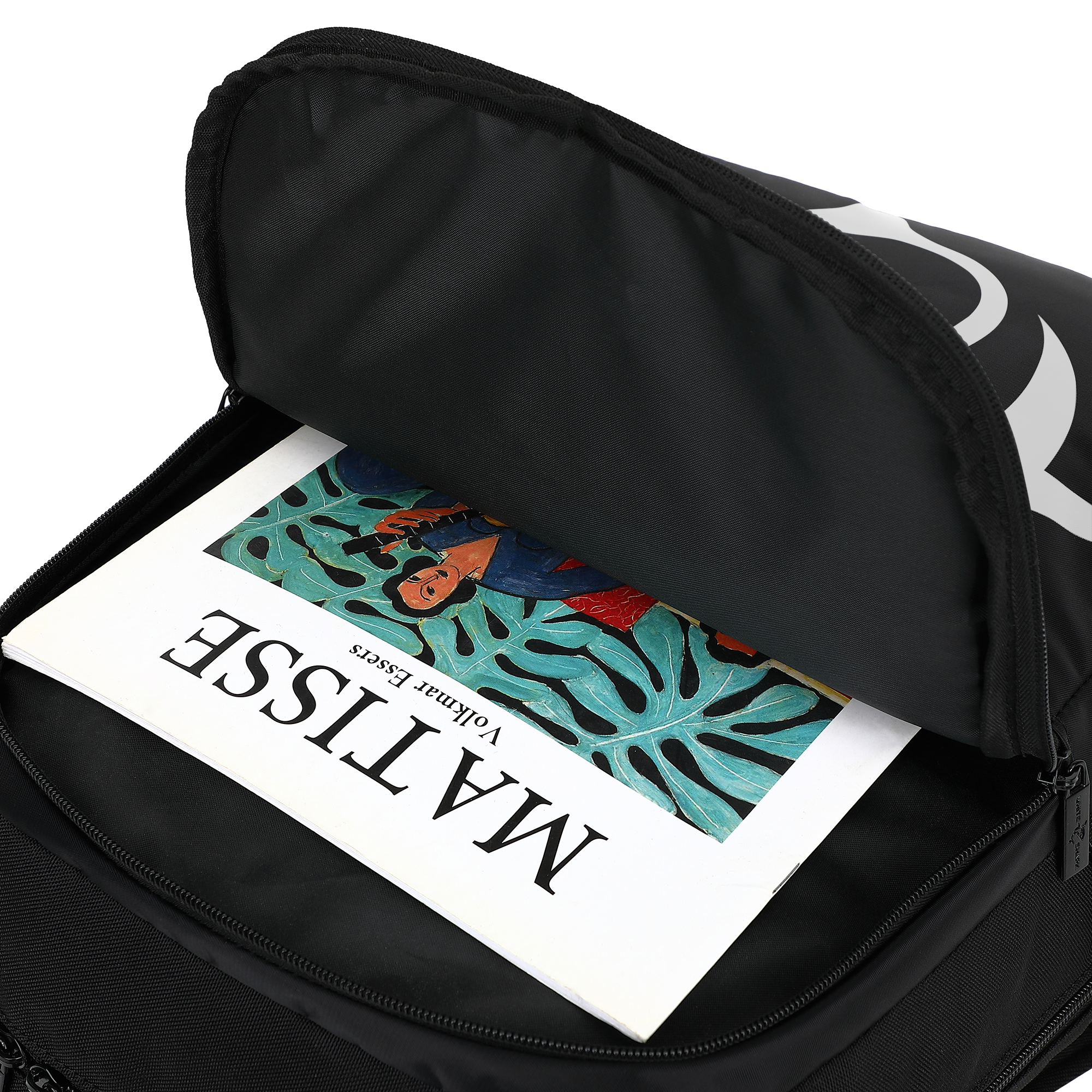 Broj pretinaca: 1 glavni pretinac sa zatvaračem i džepom za laptop, prednji manji sa zatvaračem, 2 mrežasta bočna džepa za bocu/kišobran