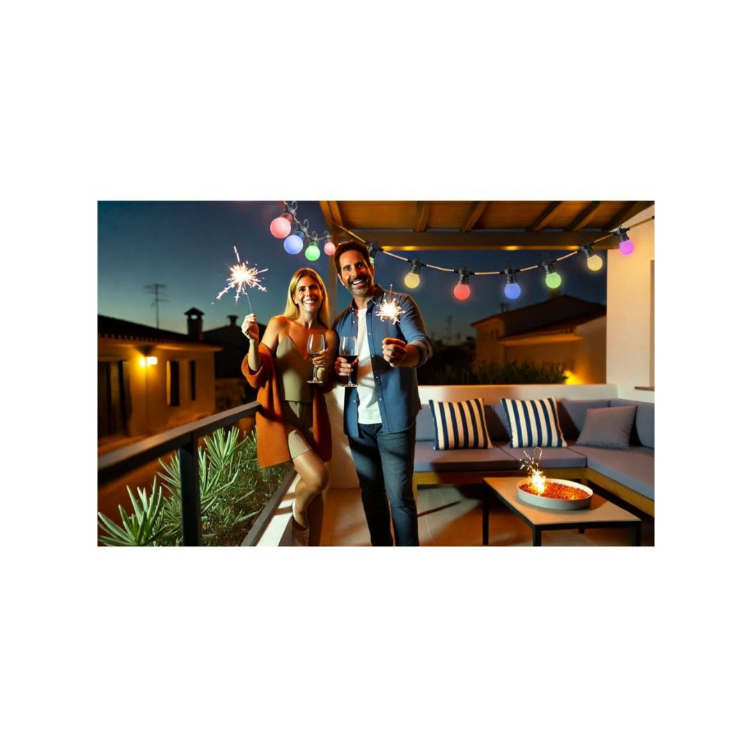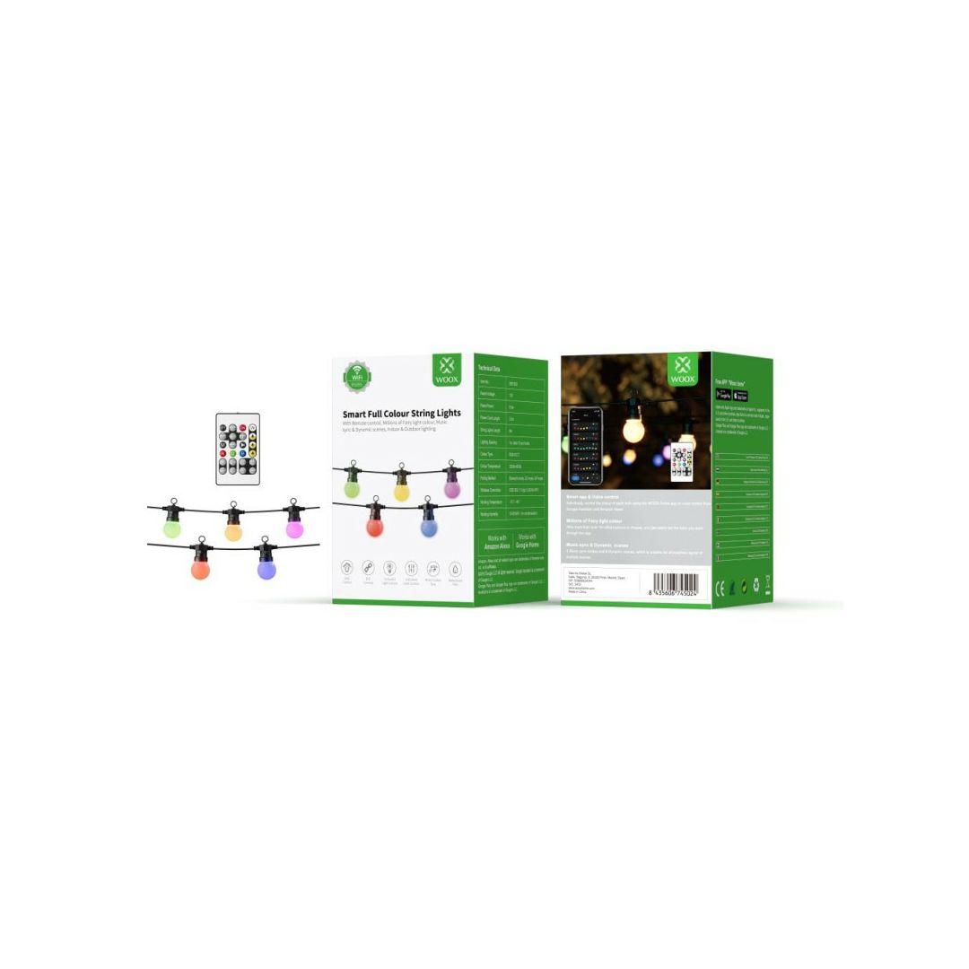 WOOX R5195 Smart Decorative Lights giving you perfect vibes for any occasion – This beautiful string of 10 LED RGB+CCT light bulbs can be used in any condition, covered by IP65 all weather protection you can use them full outdoor as well, bring joy and colour to your home, balcony or garden.App control – The same as with all WOOX devices this R5195 can be connected and controlled via our free WOOX Home app used on your iOS or Android device. You can control the colour setting, use the dim function on the brigthness of the bulbs, set different blinking and party modes in the app, create automations with other WOOX or Tuya based devices and activate the music function where the 10 light bulbs react on the sound and rhythm of music played on any music app of the device controlling the R5195 via the WOOX Home app. Manual control – In order to not spoil any momentum when using this nice R5195 lighting string we have added a manual remote control to the bundle as well. With this battery charged (included) remote control you can easily change colours, change colour modes or change the brightness of the R5195. Keep the party going and keep full control on this great decorative product.EZ connection – The R5195 operates on any 2.4GHz WiFi channel. To make the pairing process as easy as possible we have included Bluetooth in the chipset of the product in order to help pairing the lighting string when using the WOOX Home app on any smartphone or tablet. When you enable your 2.4GHz WiFi and also your Bluetooth signal on your device the R5195 shall be found and connected very fast and easy. Mounting hooks – The R5195 comes standard with strong mounting hooks at the top of each bulb, these hooks enable you to install the lighting string at any possible way, on a ceiling, in a tree, on a fence or on another cable.Option to expand – At the end of each R5195 lighting string there is a connection adapter to expand the length of the string with a next one, we support the total length of 2 R5195 strings to be connected on 1 power adapter.Features – 9 meter string + 3,3 meter power cable, 10 RGB+CCT bulbs – Works with Google Assistant & Amazon Alexa – Free WOOX Home application to control – Manual remote control included – IP65 protected, ideal for outdoor & indoor use – Music app function Specifications – Product Dimension: 5cm X 12cm X 1230cm – Net Weight: 880 Gram – Power Cable Length: 3.3 Meter – Housing Material: Pc, Pvc, Copper – Lighting String Length: 9 Meter – Number of Bulbs: 10 – Bulb Spacing: 1 Meter – Housing Colour: Black – Ingress Protection (Ip): Ip65 – Adapter Rated Input Voltage (Pri): Ac 220v~240v, 50/60hz – Adapter Rated Onput Voltage (Sec): Dc 12v, 700ma, 8.4w – Maximum Power: 5.5w – Wifi + Bt Chipset Brand and Model: Bk7231n (Cbu) – Color Type: Rgb+cct – Standby Power Consumption: – Power Factor: >0.4 – Color Temperature: Warm White 2500k, Cold White 6500k – Beam Angle: 100° – Life Span: 25.000 Hours – Woox Pid: A97mc3bvb65jaa0h – Antenna Gain (Dbi): 1 Dbi – Wireless Standard: Ieee 802.11b/g/n 2.4ghz Wi-fi – Wireless Frequency: 2400 Mhz ~ 2483.5 Mhz – Wifi Encryption Protocol: Wep, Wpa/wpa2, Wpa/wpa2 Psk (Aes)wpa3 – Working Temperature: -10°c ~ +45°c – Working Humidity: 10 ~ 80%rh (No Condensation) – Pairing Method: Bluetooth Mode, Ez Mode, Ap Mode – Timer: Support – Countdown: Support – Music: App Music – Color Adjustable: Support – Brightness Adjustable: Support – Scene Mode: Support – Disconnection Control: Only by Remote Control – Automation Function as Condition: Led Point Set,on/off,mode,brightness,temperature,countdown – Automation Function as Result: Led Point Set,on/off,mode,brightness,temperature,countdown – Voice Solution Configuration: Amazon Alexa, Google Assistant – Approved Certification: Ce-red, Rohs, Reach