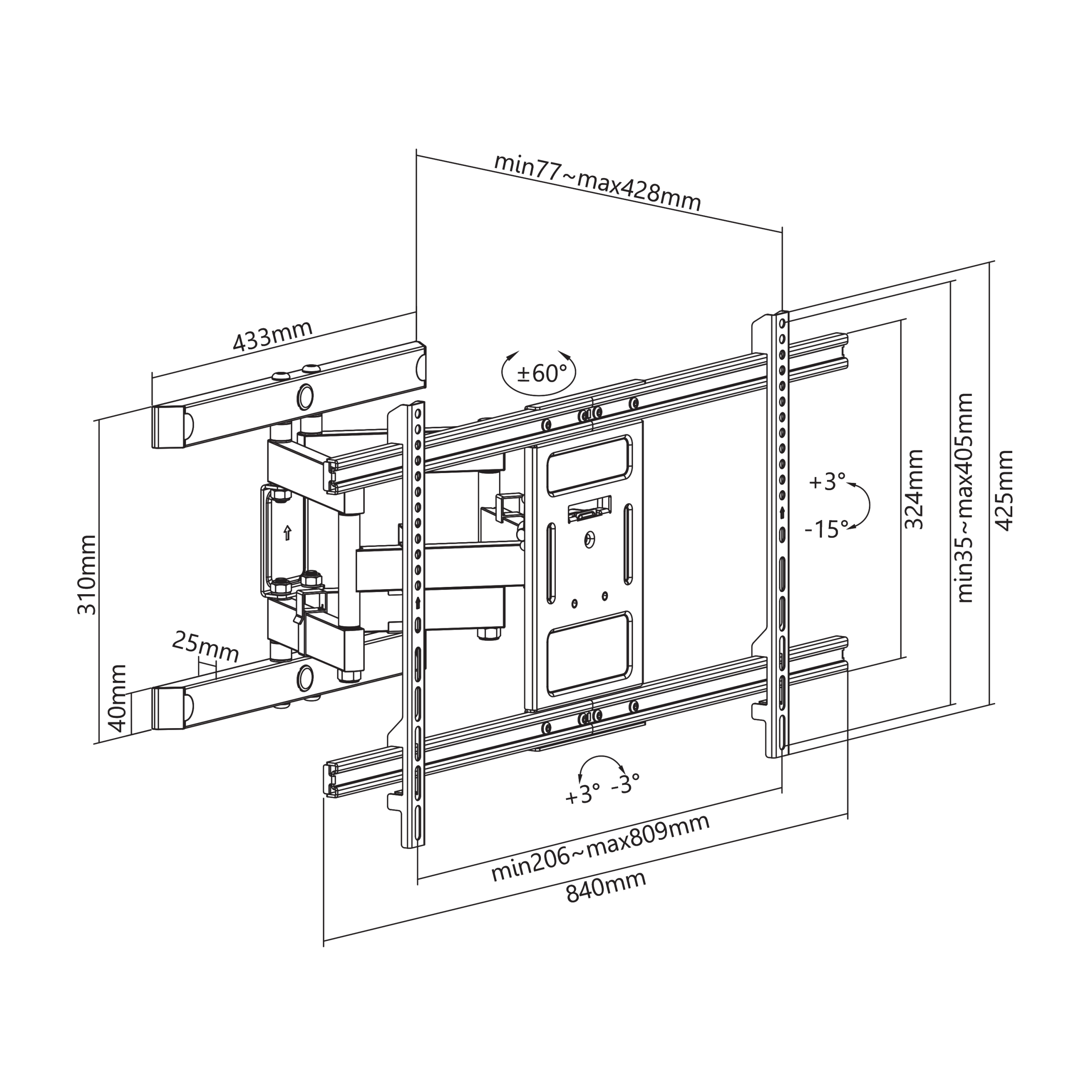 Vertikalni nagib : +3°/ -15°